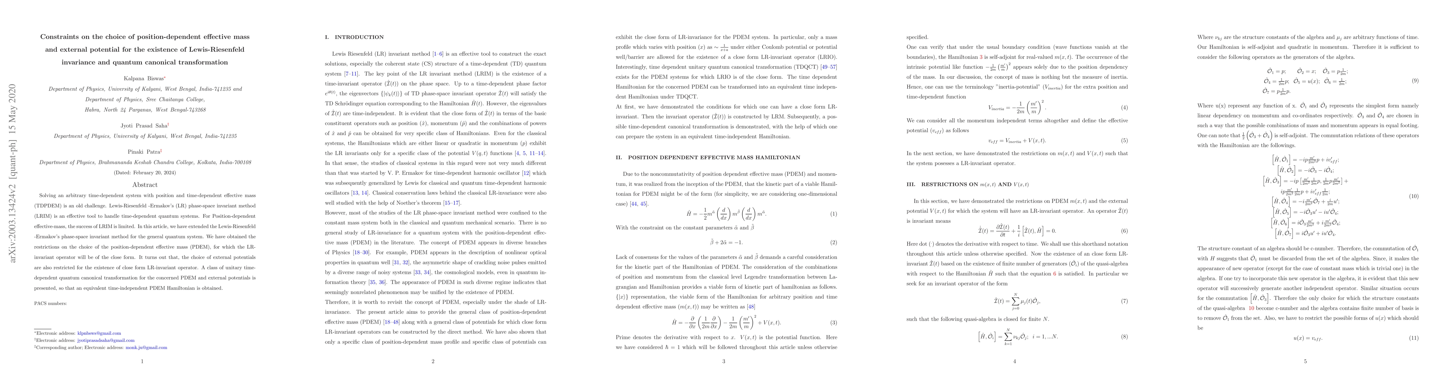 Lewis-Riesenfeld -Ermakov's (LR) invariant method for the construction of time-dependent phase-space invariant is extended for the general quantum system with position-dependent effective mass (PDEM) Hamiltonian. It turns out that, only a specific class of PDEM and a particular class of external potentials will exhibit the LR-invariant operator in close form. Then we have determined a class of unitary time-dependent quantum canonical transformation for the concerned PDEM and external potentials so that an equivalent time-independent PDEM Hamiltonian is obtained.
