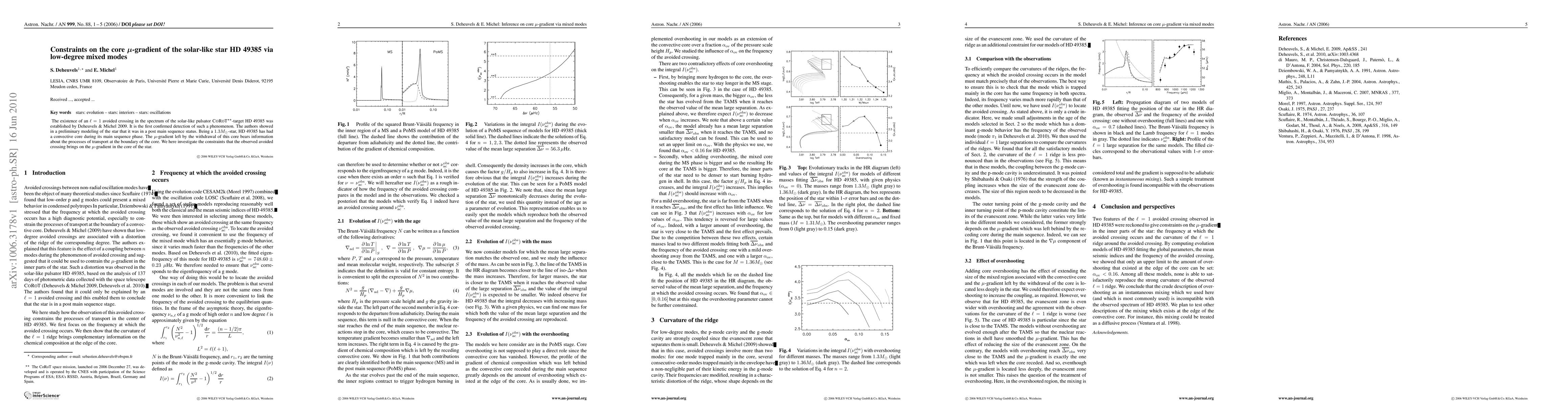 This paper investigates the constraints on the core mu-gradient of the solar-like star HD 49385 via observed low-degree mixed modes, revealing insights into the core's convective history and the transport processes at its boundary. The study confirms the star's post-main sequence status and the significance of its l=1 avoided crossing.