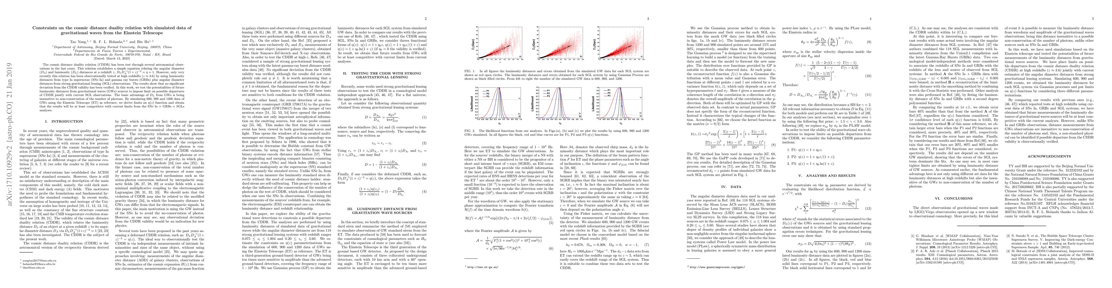 This study tests the cosmic distance duality relation using simulated gravitational wave data from the Einstein Telescope and compares its results with current limits, finding competitive constraints on the relation.