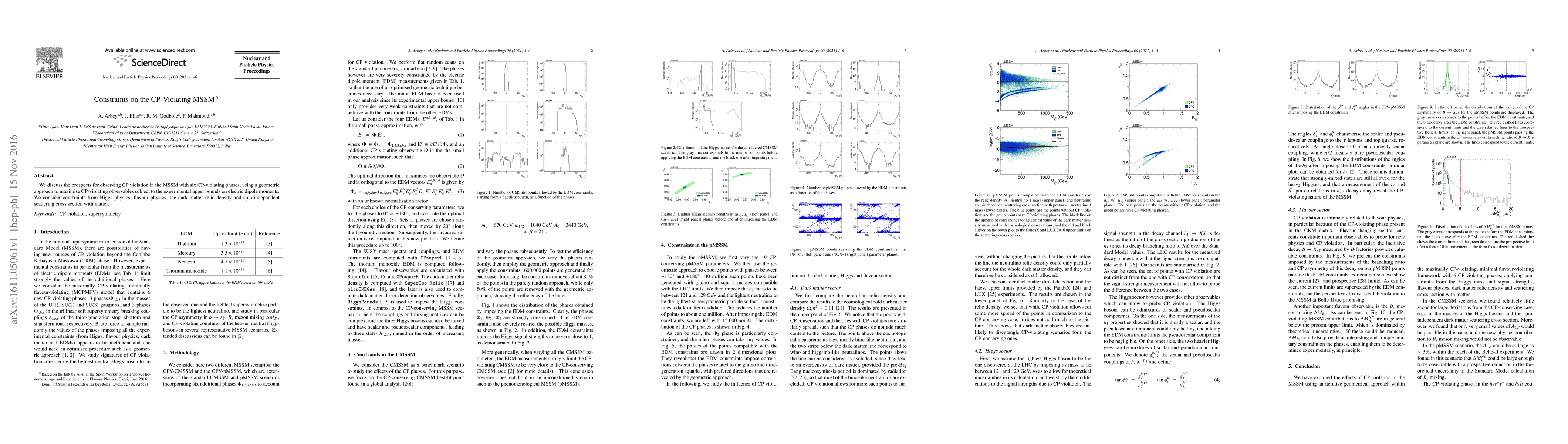 We discuss the prospects for observing CP violation in the MSSM with six CP-violating phases, using a geometric approach to maximise CP-violating observables subject to the experimental upper bounds on electric dipole moments. We consider constraints from Higgs physics, flavour physics, the dark matter relic density and spin-independent scattering cross section with matter.