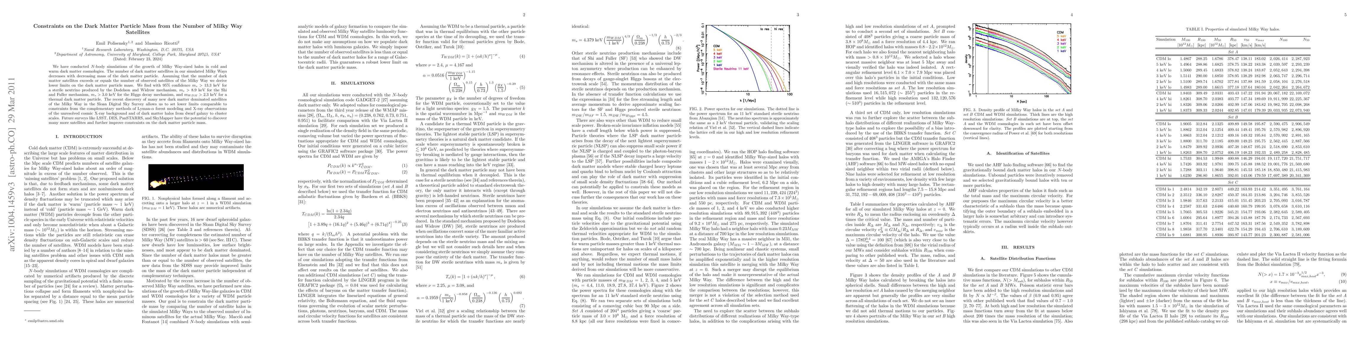 This paper uses N-body simulations to explore the relationship between dark matter particle mass and the number of Milky Way satellites, deriving lower limits for various dark matter particle models. The study finds that the number of simulated satellites decreases with lower particle mass, leading to constraints such as m_s > 13.3 keV for sterile neutrinos and m_{WDM} > 2.3 keV for warm dark matter.