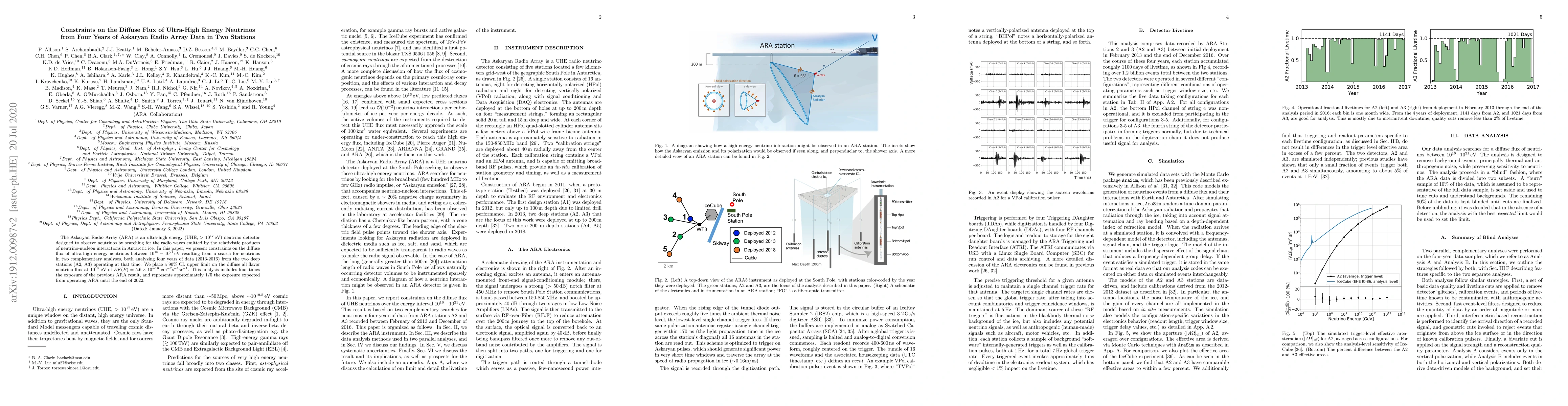 The Askaryan Radio Array (ARA) sets a 90% confidence level upper limit on the diffuse flux of ultra-high energy neutrinos at $10^{18}$ eV, finding $EF(E)=5.6\times10^{-16} \textrm{cm}^{-2}\textrm{s}^{-1}\textrm{sr}^{-1}$ from four years of data from two stations. This analysis quadruples the previous ARA exposure and represents 1/5 of the expected total by 2022.