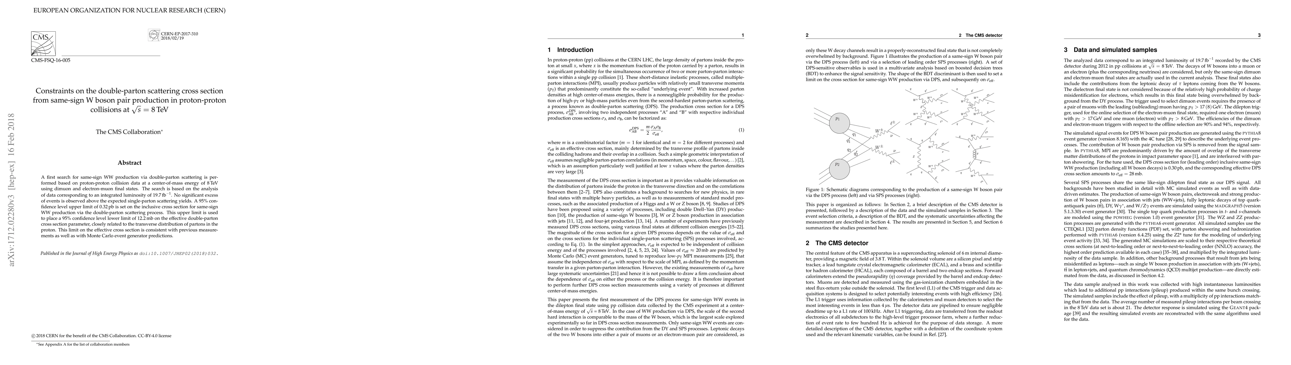 Researchers searched for same-sign W boson pair production in proton-proton collisions at 8 TeV and found no significant excess of events above expected yields, setting a limit on the inclusive cross section and effective double-parton scattering parameter.