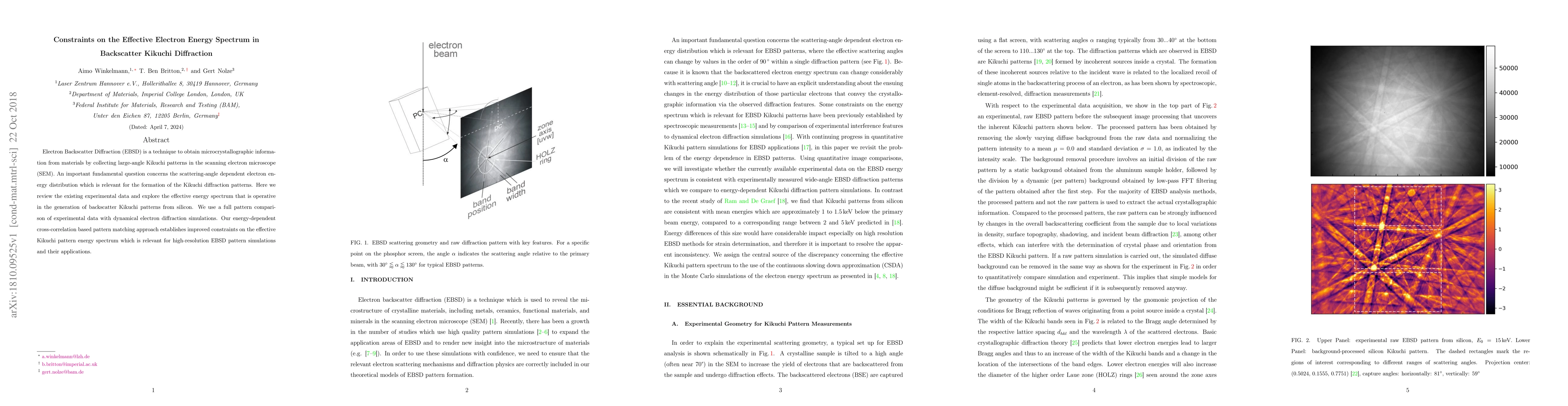 Electron Backscatter Diffraction (EBSD) is a technique to obtain microcrystallographic information from materials by collecting large-angle Kikuchi patterns in the scanning electron microscope (SEM). An important fundamental question concerns the scattering-angle dependent electron energy distribution which is relevant for the formation of the Kikuchi diffraction patterns. Here we review the existing experimental data and explore the effective energy spectrum that is operative in the generation of backscatter Kikuchi patterns from silicon. We use a full pattern comparison of experimental data with dynamical electron diffraction simulations. Our energy-dependent cross-correlation based pattern matching approach establishes improved constraints on the effective Kikuchi pattern energy spectrum which is relevant for high-resolution EBSD pattern simulations and their applications.