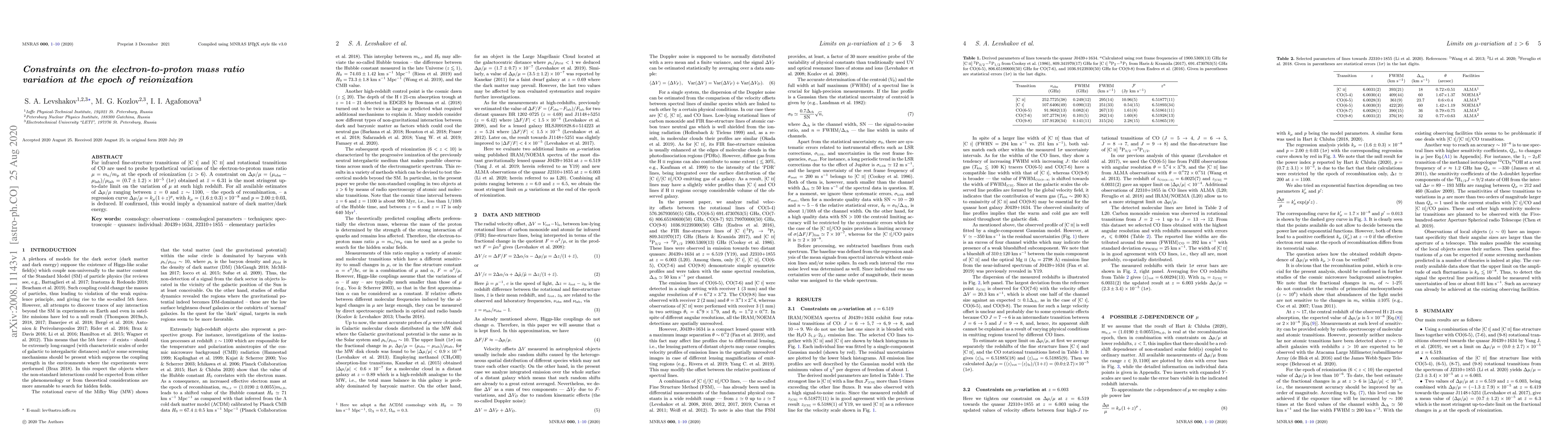 6). A constraint on Delta mu/mu = (mu_obs - mu_lab)/mu_lab = (0.7 +/-