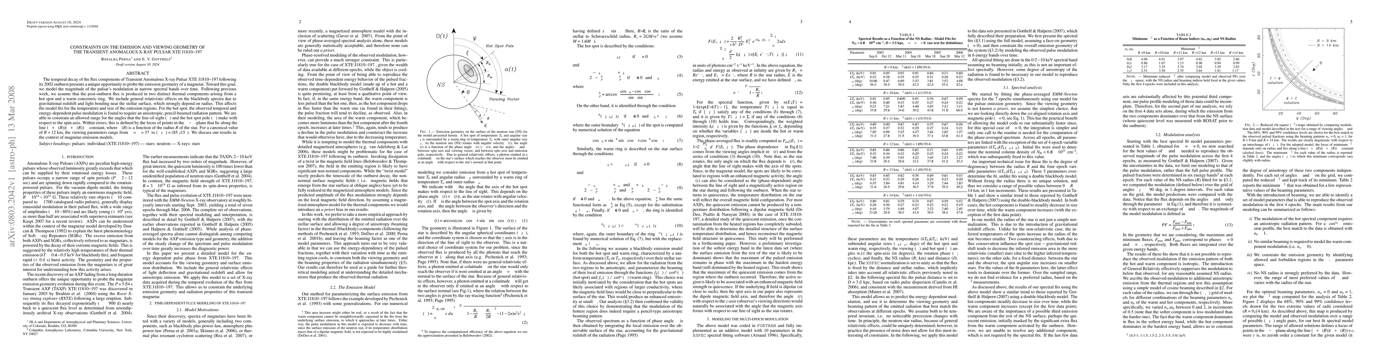 The temporal decay of the flux components of Transient Anomalous X-ray Pulsar XTE J1810-197 following its 2002 outburst presents a unique opportunity to probe the emission geometry of a magnetar. Toward this goal, we model the magnitude of the pulsar's modulation in narrow spectral bands over time. Following previous work, we assume that the post-outburst flux is produced in two distinct thermal components arising from a hot spot and a warm concentric ring. We include general relativistic effects on the blackbody spectra due to gravitational redshift and light bending near the stellar surface, which strongly depend on radius. This affects the model fits for the temperature and size of the emission regions. For the hot spot, the observed temporal and energy-dependent pulse modulation is found to require an anisotropic, pencil-beamed radiation pattern. We are able to constrain an allowed range for the angles that the line-of-sight (psi) and the hot spot pole (xi) make with respect to the spin-axis. Within errors, this is defined by the locus of points in the xi-psi plane that lie along the line (xi+beta(R))(psi+beta(R)) ~ constant, where beta(R) is a function of the radius R of the star. For a canonical value of R=12 km, the viewing parameters range from psi=xi=37 deg to (psi,xi)=(85 deg,15 deg). We discuss our results in the context of magnetar emission models.