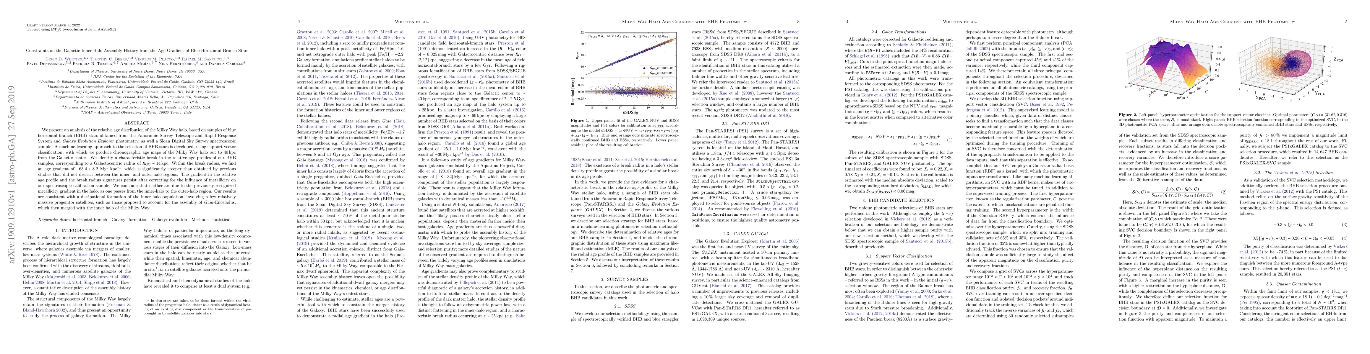 We present an analysis of the relative age distribution of the Milky Way halo, based on samples of blue horizontal-branch (BHB) stars obtained from the Panoramic Survey Telescope and Rapid Response System and \textit{Galaxy Evolution Explorer} photometry, as well a Sloan Digital Sky Survey spectroscopic sample. A machine-learning approach to the selection of BHB stars is developed, using support vector classification, with which we produce chronographic age maps of the Milky Way halo out to 40\,kpc from the Galactic center. We identify a characteristic break in the relative age profiles of our BHB samples, corresponding to a Galactocentric radius of $R_{\rm{GC}} \sim 14$\,kpc. Within the break radius, we find an age gradient of $-63.4 \pm 8.2$ Myr kpc$^{-1}$, which is significantly steeper than obtained by previous studies that did not discern between the inner- and outer-halo regions. The gradient in the relative age profile and the break radius signatures persist after correcting for the influence of metallicity on our spectroscopic calibration sample. We conclude that neither are due to the previously recognized metallicity gradient in the halo, as one passes from the inner-halo to the outer-halo region. Our results are consistent with a dissipational formation of the inner-halo population, involving a few relatively massive progenitor satellites, such as those proposed to account for the assembly of \textit{Gaia}-Enceladus, which then merged with the inner halo of the Milky Way.
