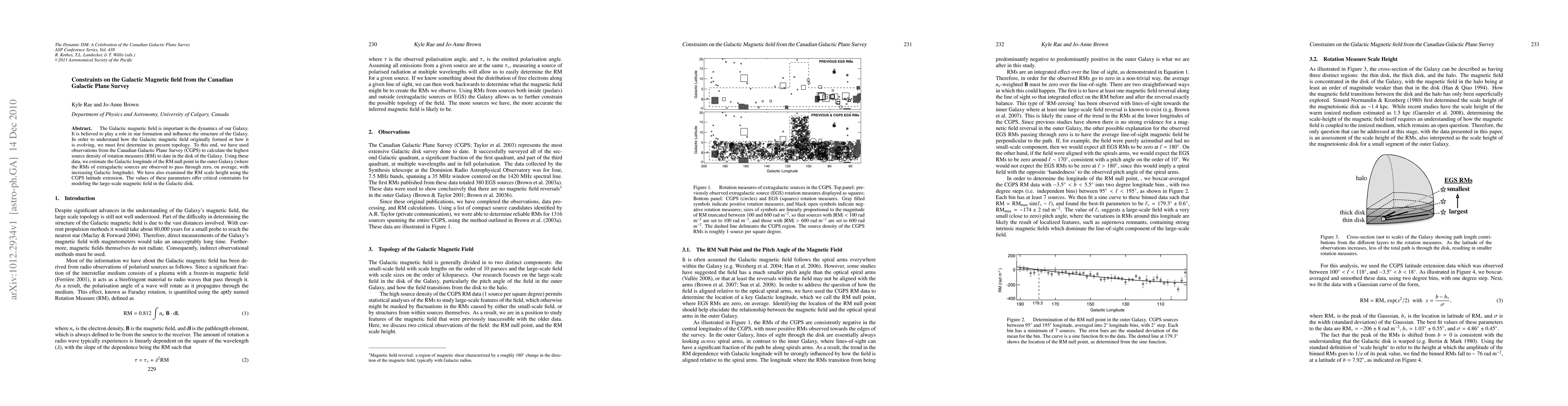The Galactic magnetic field is important in the dynamics of our Galaxy. It is believed to play a role in star formation and influence the structure of the Galaxy. In order to understand how the Galactic magnetic field originally formed or how it is evolving, we must first determine its present topology. To this end, we have used observations from the Canadian Galactic Plane Survey (CGPS) to calculate the highest source density of rotation measures (RM) to date in the disk of the Galaxy. Using these data, we estimate the Galactic longitude of the RM null point in the outer Galaxy (where the RMs of extragalactic sources are observed to pass through zero, on average, with increasing Galactic longitude). We have also examined the RM scale height using the CGPS latitude extension. The values of these parameters offer critical constraints for modeling the large-scale magnetic field in the Galactic disk.