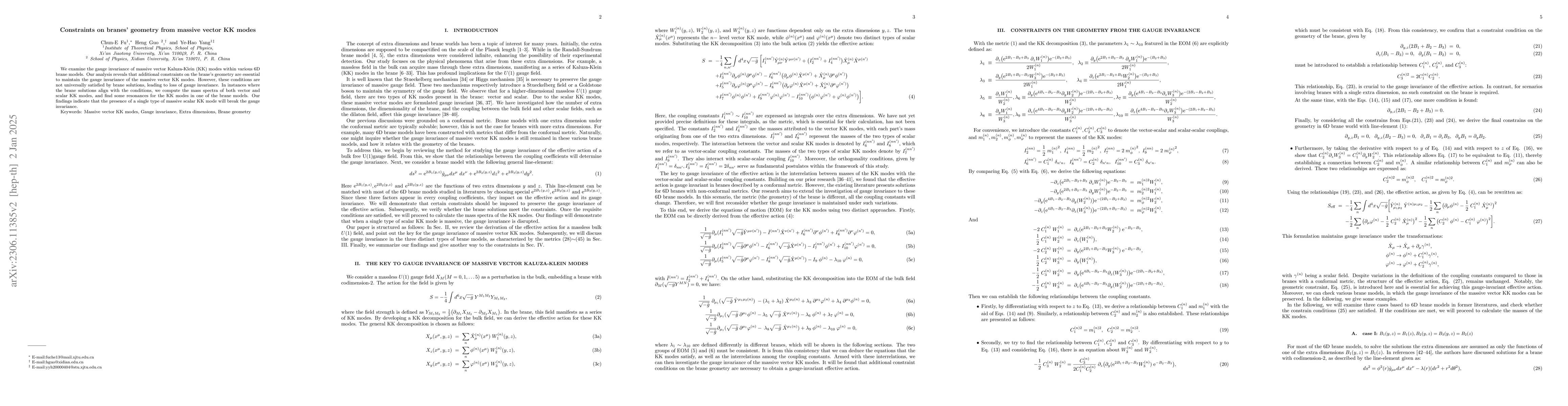 This paper explores the gauge invariance of massive vector Kaluza-Klein modes in brane models with two extra dimensions, finding that certain geometry constraints are necessary but often unmet, leading to broken gauge invariance. When conditions are met, calculations reveal that the presence of a massive scalar KK mode also breaks gauge invariance.
