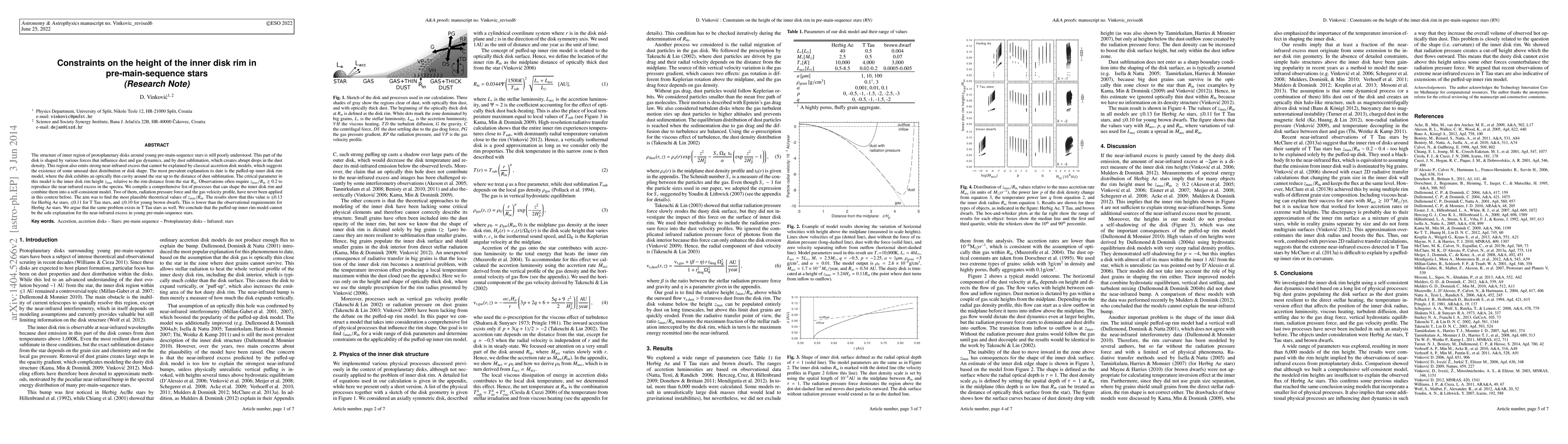 The structure of inner region of protoplanetary disks around young pre-main-sequence stars is still poorly understood. This part of the disk is shaped by various forces that influence dust and gas dynamics, and by dust sublimation, which creates abrupt drops in the dust density. This region also emits strong near-infrared excess that cannot be explained by classical accretion disk models, which suggests the existence of some unusual dust distribution or disk shape. The most prevalent explanation to date is the puffed-up inner disk rim model, where the disk exhibits an optically thin cavity around the star up to the distance of dust sublimation. The critical parameter in this model is the inner disk rim height $z_{\rm max}$ relative to the rim distance from the star $R_{\rm in}$. Observations often require $z_{\rm max}/R_{\rm in}\gtrsim0.2$ to reproduce the near-infrared excess in the spectra. We compile a comprehensive list of processes that can shape the inner disk rim and combine them into a self-consistent model. Two of them, radiation pressure force and the gas velocity profile, have never been applied in this context before. The aim was to find the most plausible theoretical values of $z_{\rm max}/R_{\rm in}$. The results show that this value is $\lesssim$0.13 for Herbig Ae stars, $\lesssim$0.11 for T Tau stars, and $\lesssim$0.10 for young brown dwarfs. This is lower than the observational requirements for Herbig Ae stars. We argue that the same problem exists in T Tau stars as well. We conclude that the puffed-up inner rim model cannot be the sole explanation for the near-infrared excess in young pre-main-sequence stars.