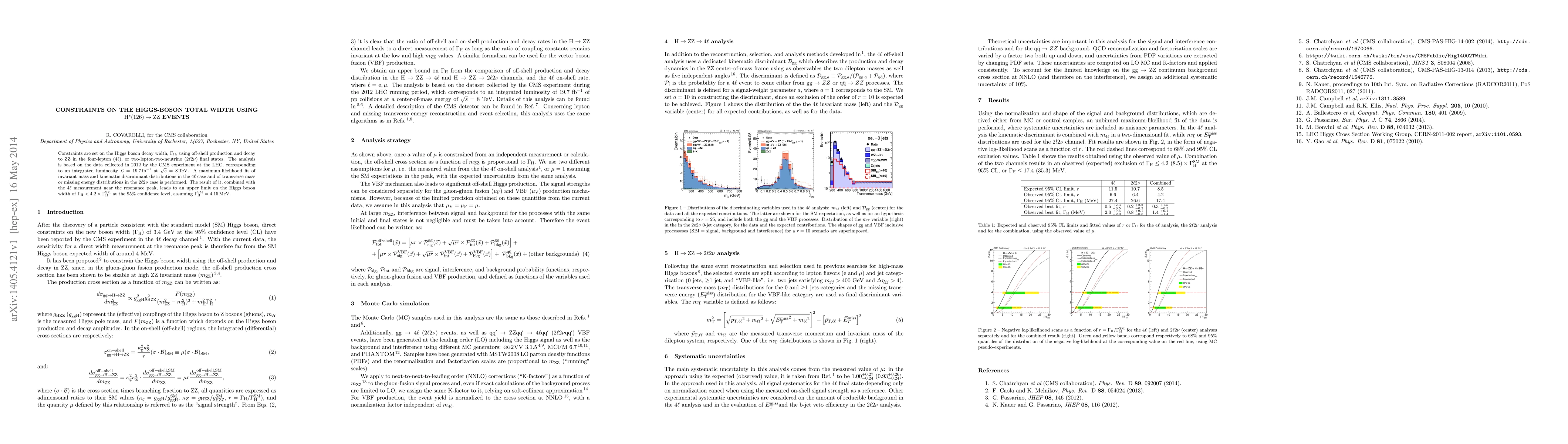 Constraints are set on the Higgs boson decay width, Gamma_H, using off-shell production and decay to ZZ in the four-lepton (4l), or two-lepton-two-neutrino (2l2nu) final states. The analysis is based on the data collected in 2012 by the CMS experiment at the LHC, corresponding to an integrated luminosity L = 19.7 fb^{-1} at sqrt(s) = 8 TeV. A maximum-likelihood fit of invariant mass and kinematic discriminant distributions in the 4l case and of transverse mass or missing energy distributions in the 2l2nu case is performed. The result of it, combined with the 4l measurement near the resonance peak, leads to an upper limit on the Higgs boson width of Gamma_H < 4.2 x Gamma_H^SM at the 95% confidence level, assuming Gamma_H^SM = 4.15 MeV.