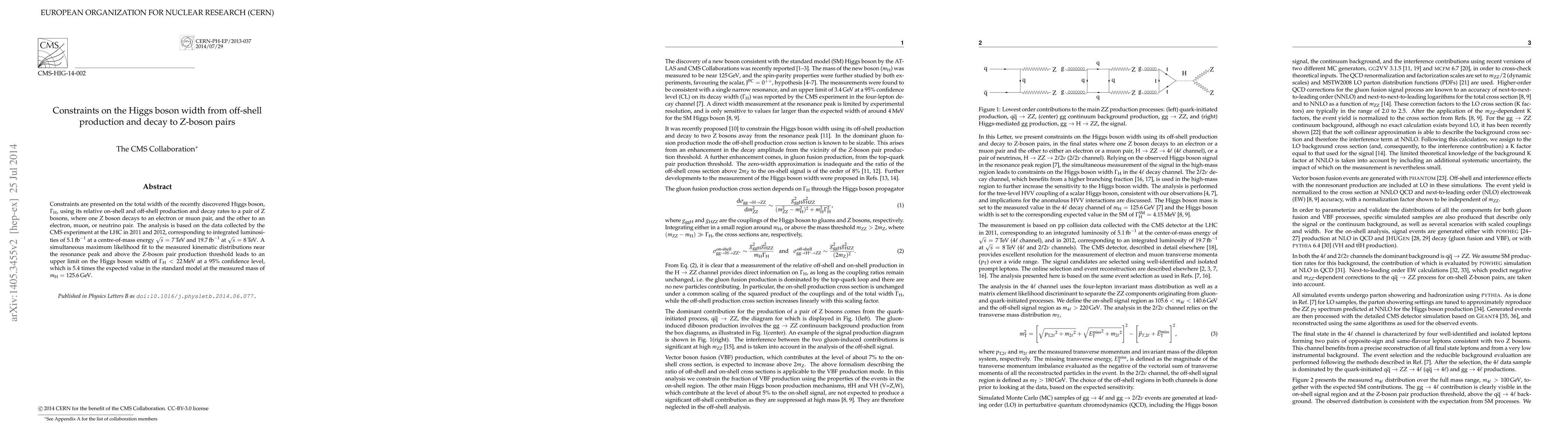 Constraints are presented on the total width of the recently discovered Higgs boson, Gamma[H], using its relative on-shell and off-shell production and decay rates to a pair of Z bosons, where one Z boson decays to an electron or muon pair, and the other to an electron, muon, or neutrino pair. The analysis is based on the data collected by the CMS experiment at the LHC in 2011 and 2012, corresponding to integrated luminosities of 5.1 inverse femtobarns at a centre-of-mass energy sqrt(s) = 7 TeV and 19.7 inverse femtobarns at sqrt(s) = 8 TeV. A simultaneous maximum likelihood fit to the measured kinematic distributions near the resonance peak and above the Z-boson pair production threshold leads to an upper limit on the Higgs boson width of Gamma[H] < 22 MeV at a 95% confidence level, which is 5.4 times the expected value in the standard model at the measured mass.