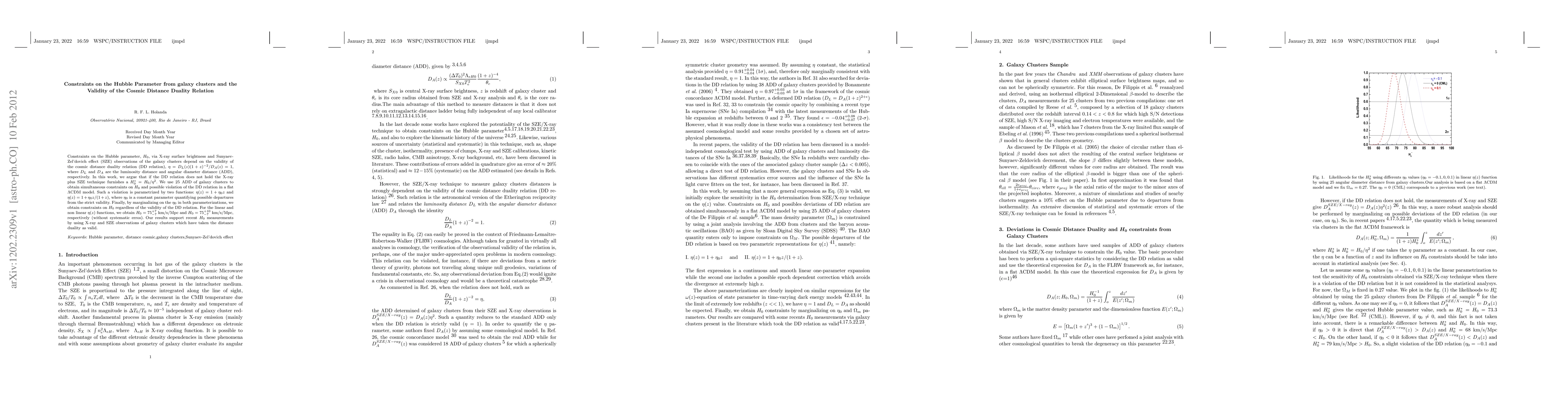 Researchers used X-ray surface brightness and Sunyaev-Zel'dovich effect observations of galaxy clusters to constrain the Hubble parameter $H_0$, finding a value of $75^{+ 7}_{-7}$ km/s/Mpc with potential departures from the cosmic distance duality relation.