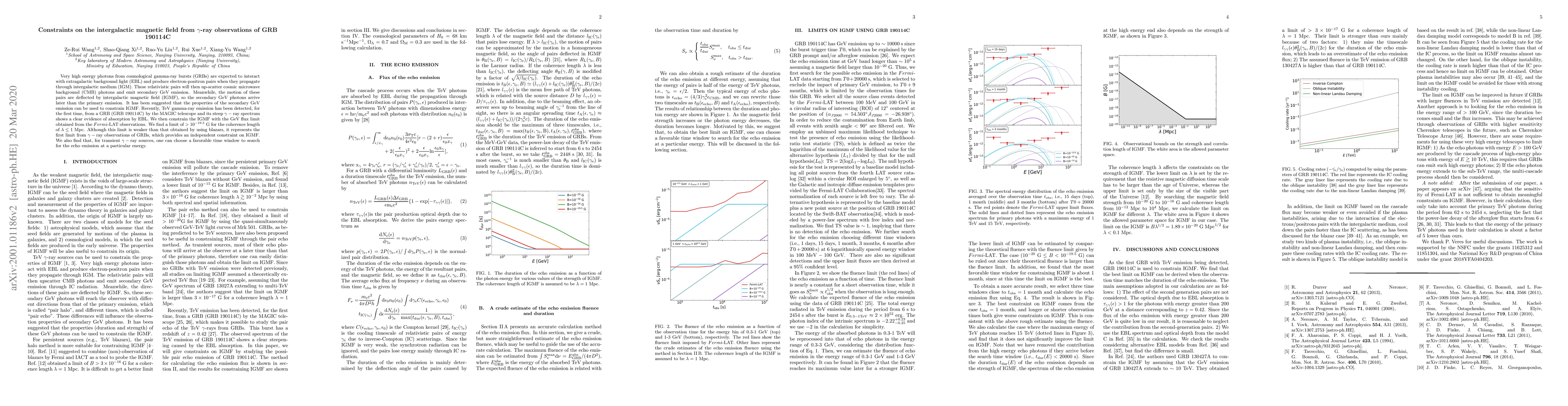 This paper uses the detection of TeV gamma-ray emission from GRB 190114C to constrain the intergalactic magnetic field (IGMF) by analyzing the secondary GeV emission. The study finds a limit of $>10^{-19.5}$ G for IGMF coherence length up to 1 Mpc, providing an independent constraint from gamma-ray observations of GRBs.