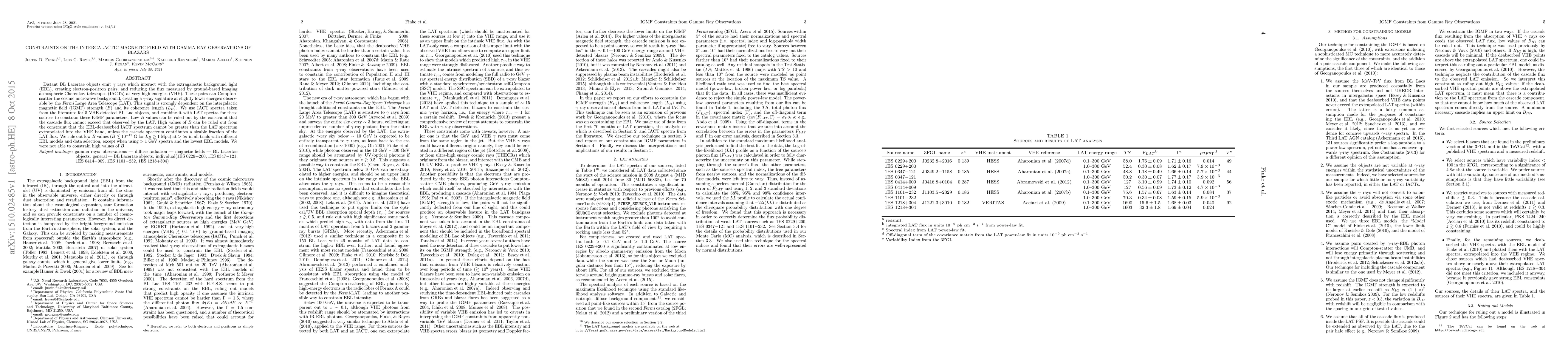 Researchers used gamma-ray observations of Blazars to constrain the strength and coherence length of the intergalactic magnetic field, ruling out low B values and failing to constrain high B values.