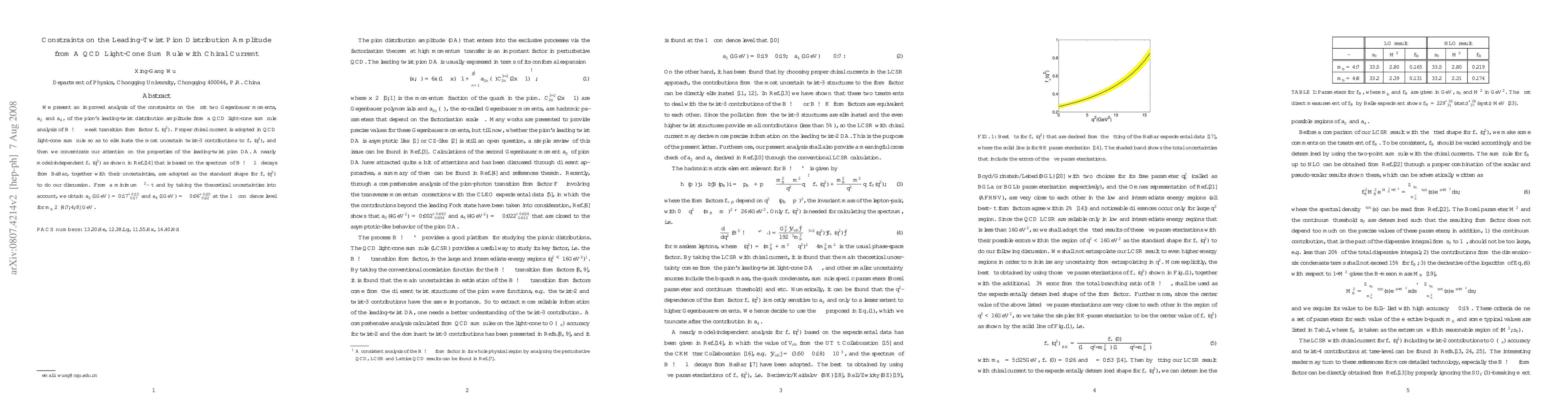 This paper constrains the leading-twist pion distribution amplitude using a QCD light-cone sum rule analysis of B decay form factors, yielding bounds on the Gegenbauer moments $a^ ho_2$ and $a^ ho_4$.