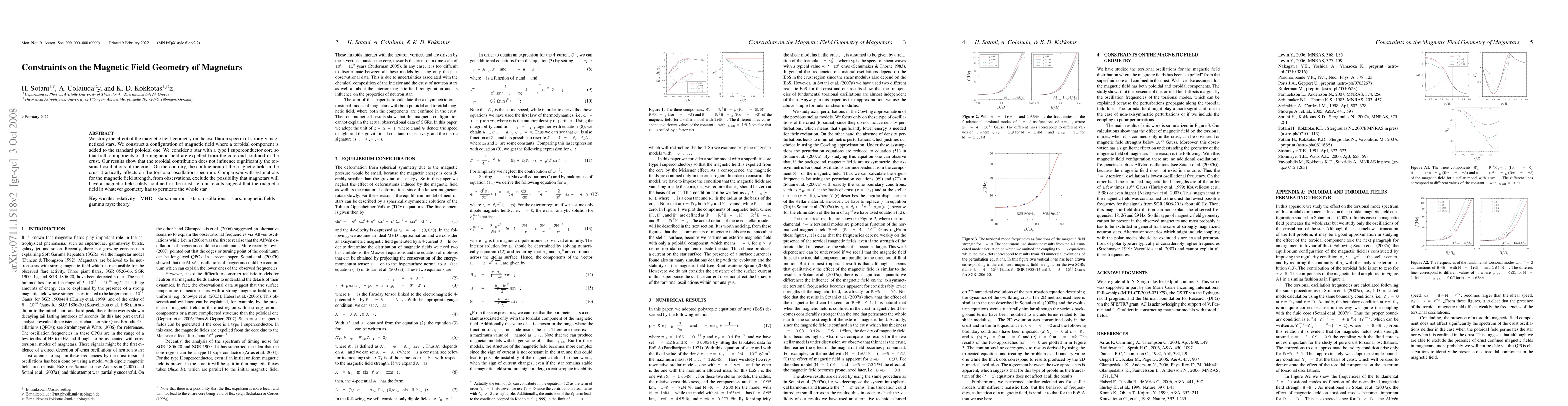 We study the effect of the magnetic field geometry on the oscillation spectra of strongly magnetized stars. The magnetic field distributions include both toroidal and poloidal contributions. We observe that the toroidal contribution does not influence significantly the torsional oscillations of the crust. Moreover, in the case that the core is a type I supercontactor and the magnetic fields are confined in the crust, the torsional oscillation spectrum is drastically affected by the presence of the strong magnetic fields. Comparison with results and estimations for the magnetic field strength, from observations, exclude the possibility that magnetars will have a magnetic field solely confined in the crust i.e. our results suggest that the magnetic field in whatever geometry has to permeate the whole star.
