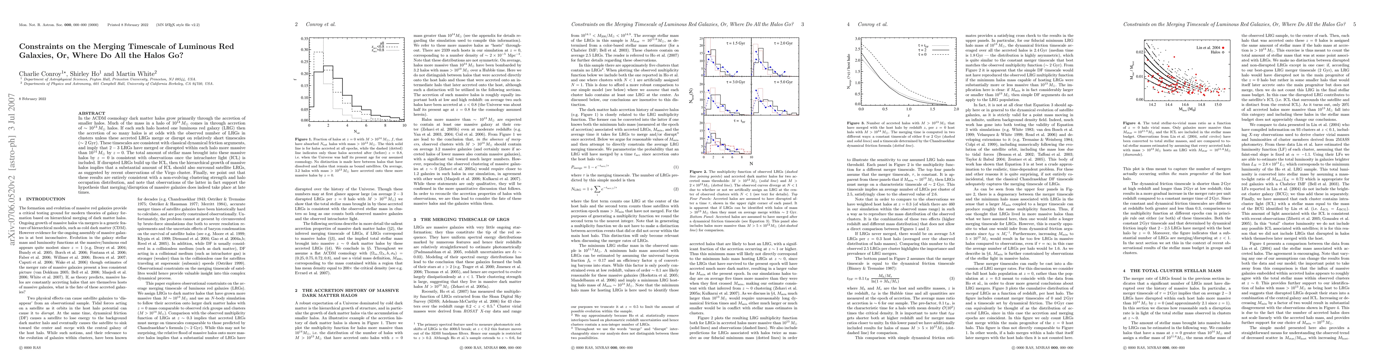 In the LCDM cosmology dark matter halos grow primarily through the accretion of smaller halos. Much of the mass in a halo of 10^14Msun comes in through accretion of ~10^13Msun halos. If each such halo hosted one luminous red galaxy (LRG) then the accretion of so many halos is at odds with the observed number of LRGs in clusters unless these accreted LRGs merge or disrupt on relatively short timescales (~2Gyr). These timescales are consistent with classical dynamical friction arguments, and imply that 2-3 LRGs have merged or disrupted within each halo more massive than 10^14Msun by z=0. The total amount of stellar mass brought into these massive halos by z=0 is consistent with observations once the intracluster light (ICL) is included. If disrupted LRGs build up the ICL, then the hierarchical growth of massive halos implies that a substantial amount of ICL should also surround satellite LRGs, as suggested by recent observations of the Virgo cluster. Finally, we point out that these results are entirely consistent with a non-evolving clustering strength and halo occupation distribution, and note that observations of the latter in fact support the hypothesis that merging/disruption of massive galaxies does indeed take place at late times.