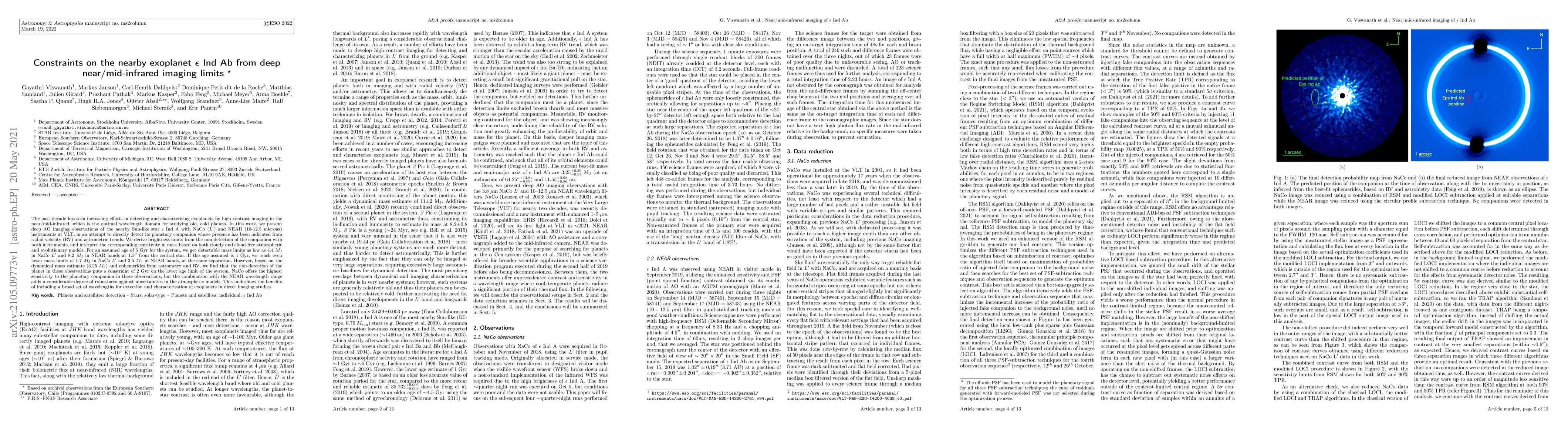 This research uses deep near/mid-infrared imaging with VLT's NaCo and NEAR instruments to set constraints on the nearby exoplanet candidate $epsilon$ Ind Ab. Despite sensitive observations, the planet wasn't detected, leading to a minimum age estimate of 2 Gyr for the system based on dynamical mass and astrometric data. The study highlights the importance of multi-wavelength observations in direct imaging of exoplanets for robust characterization.