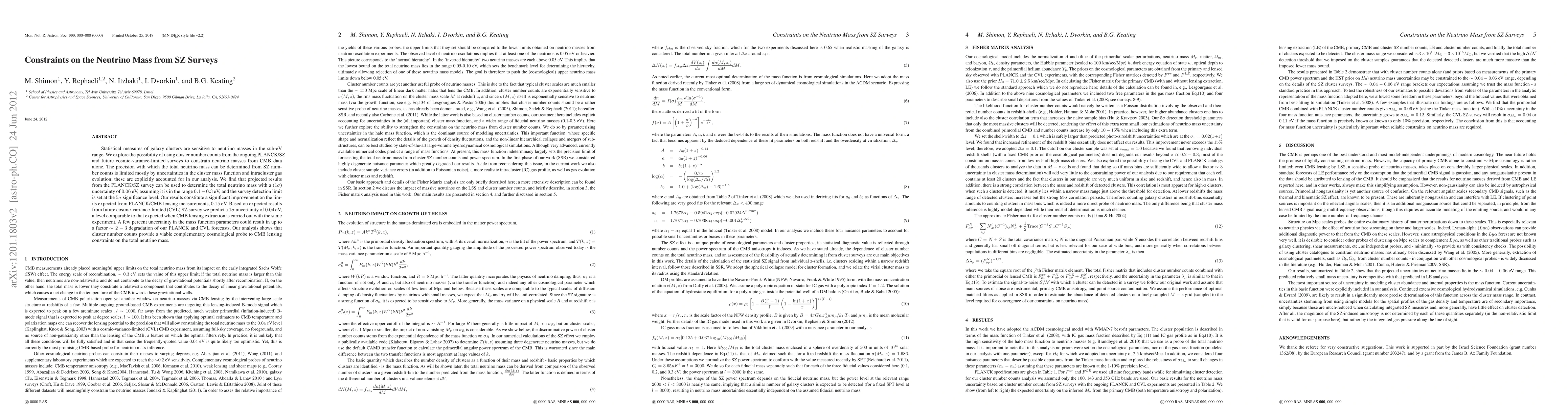 This paper explores the use of galaxy cluster number counts from PLANCK/SZ surveys to constrain neutrino masses, finding that such surveys can determine the total neutrino mass with a 1\sigma uncertainty of 0.06 eV for masses in the 0.1-0.3 eV range, significantly improving on CMB lensing measurements. Future cosmic-variance-limited surveys could achieve even better precision, with a 1\sigma uncertainty of 0.04 eV.