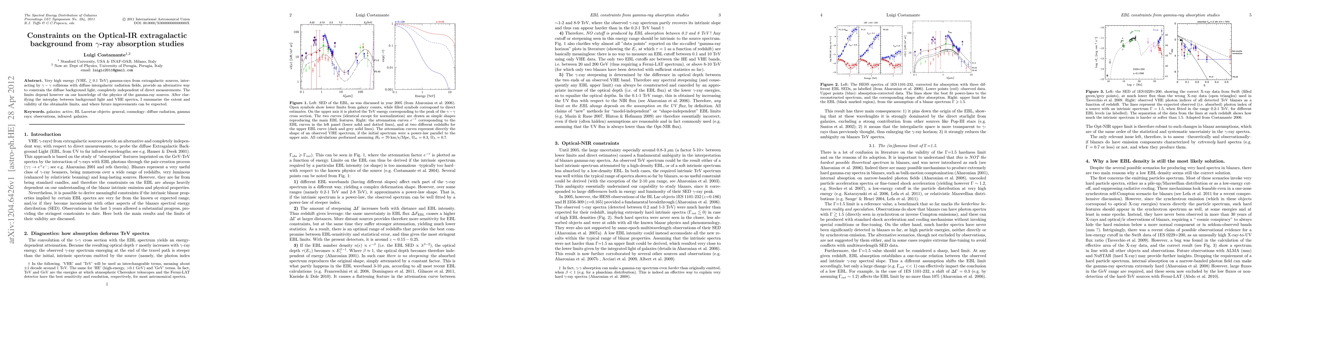This paper explores how gamma-ray absorption from extragalactic sources can constrain the optical-IR extragalactic background light, independent of direct measurements, and discusses the limitations imposed by our current understanding of gamma-ray source physics. Future improvements in this method are anticipated as our knowledge of these sources advances.