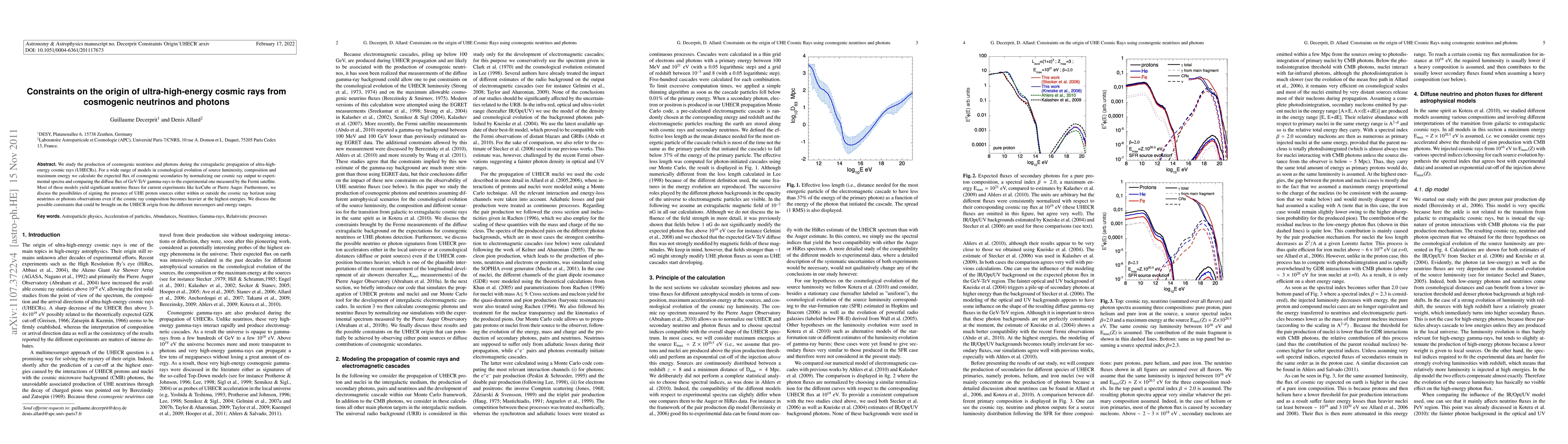 This paper explores the production of cosmogenic neutrinos and photons from ultra-high-energy cosmic rays (UHECRs) during their extragalactic propagation. It evaluates various models for UHECR sources and discusses the potential constraints on their origin derived from observations of these secondary particles, particularly using current experiments like IceCube and the Fermi satellite.