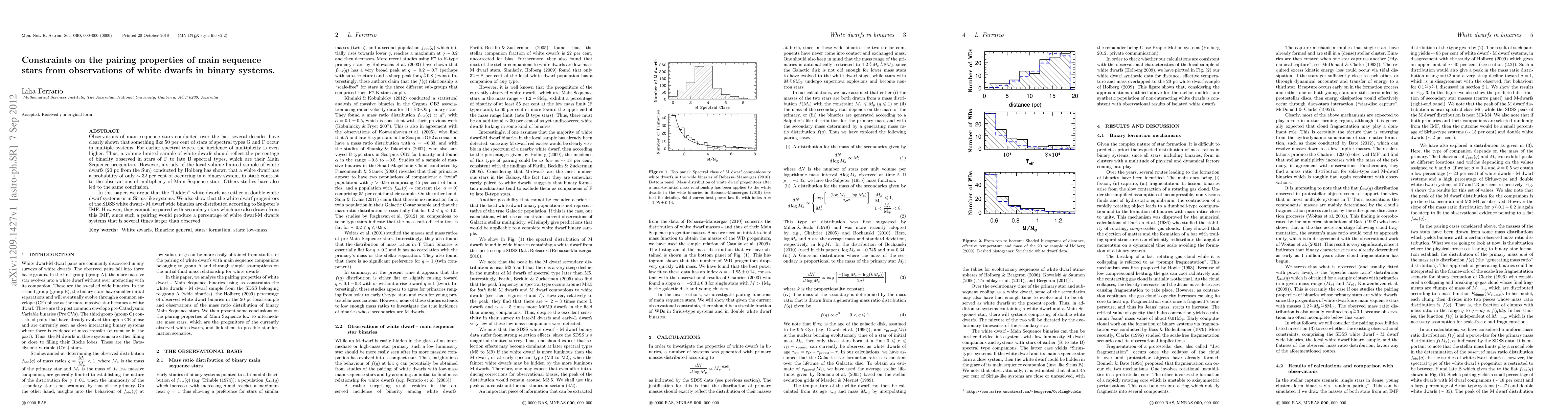 This paper investigates the discrepancy between the high multiplicity rates of main sequence stars and the lower binary occurrence rate of their white dwarf progenitors. It concludes that "hidden" white dwarfs likely exist in binary systems that are not easily detectable, and that these progenitors follow Salpeter's IMF but do not pair with secondary stars from the same IMF due to the resulting overabundance of white dwarf-M dwarf systems.