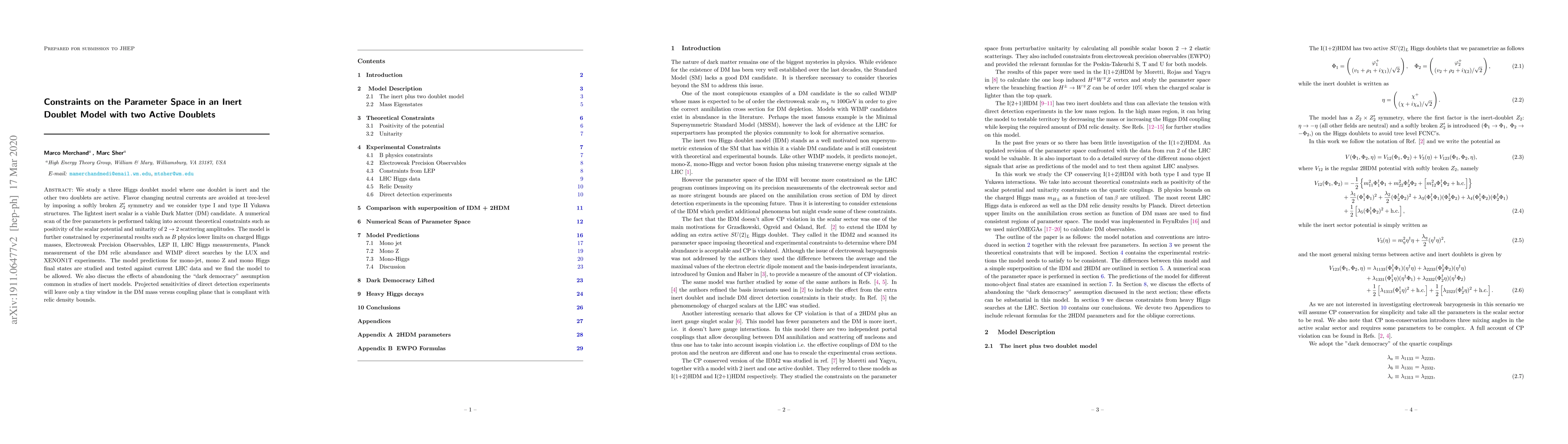 This paper explores a three Higgs doublet model with one inert and two active doublets, avoiding flavor changing neutral currents via a softly broken $Z'_2$ symmetry. The lightest inert scalar is a viable Dark Matter candidate, and the model is constrained by theoretical and experimental factors, including LHC data and relic abundance measurements. Future direct detection experiments are expected to significantly narrow down the allowed parameter space.