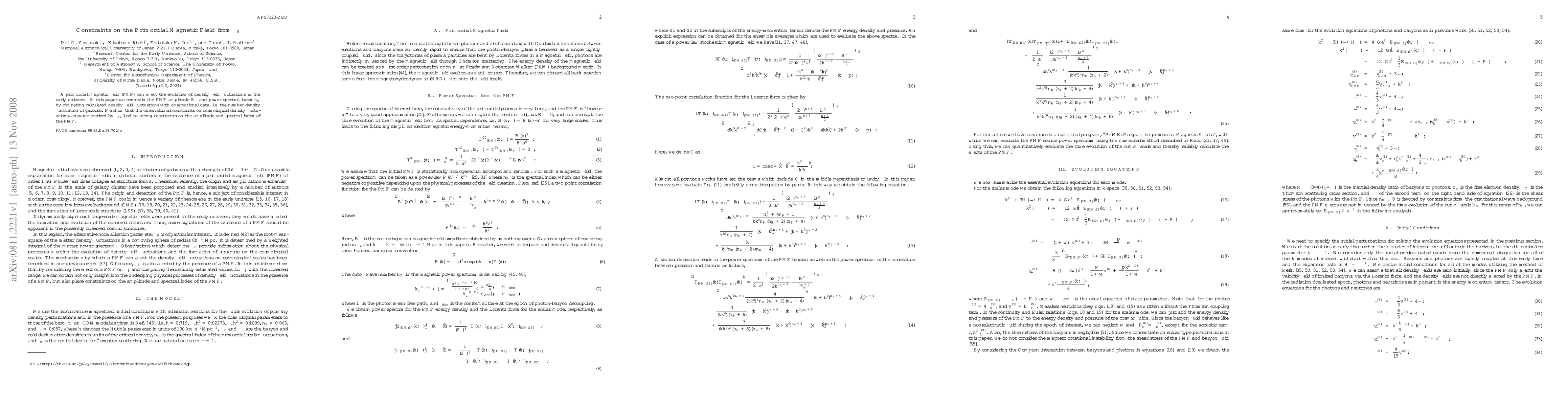 A primordial magnetic field (PMF) can affect the evolution of density field fluctuations in the early universe.In this paper we constrain the PMF amplitude $B_\lambda$ and power spectral index $n_\mathrm{B}$ by comparing calculated density field fluctuations with observational data, i.e. the number density fluctuation of galaxies.We show that the observational constraints on cosmological density fluctuations, as parameterized by $\sigma_8$, lead to strong constraints on the amplitude and spectral index of the PMF.