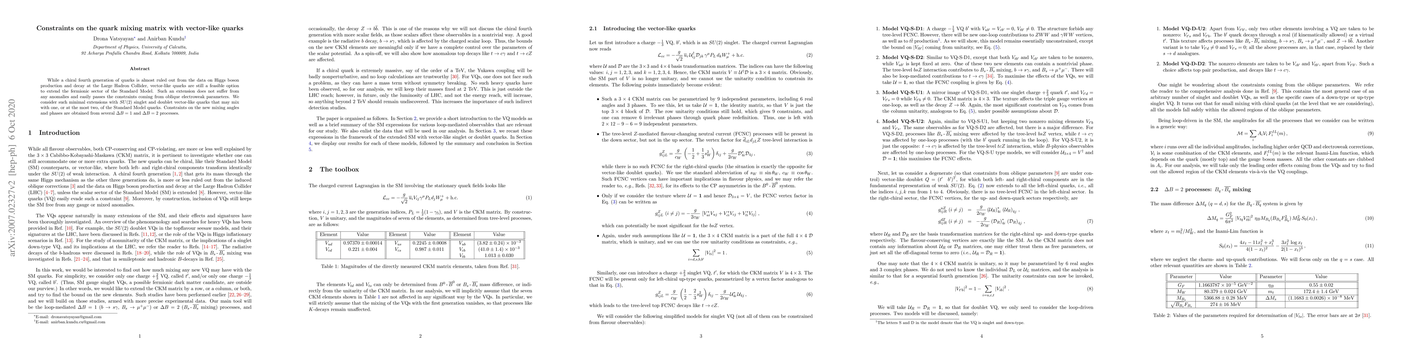 While a chiral fourth generation of quarks is almost ruled out from the data on Higgs boson production and decay at the Large Hadron Collider, vector-like quarks are still a feasible option to extend the fermionic sector of the Standard Model. Such an extension does not suffer from any anomalies and easily passes the constraints coming from oblique electroweak parameters. We consider such minimal extensions with $SU(2)$ singlet and doublet vector-like quarks that may mix with one, or at the most two, of the Standard Model quarks. Constraints on the new mixing angles and phases are obtained from several $\Delta B = 1$ and $\Delta B = 2$ processes.