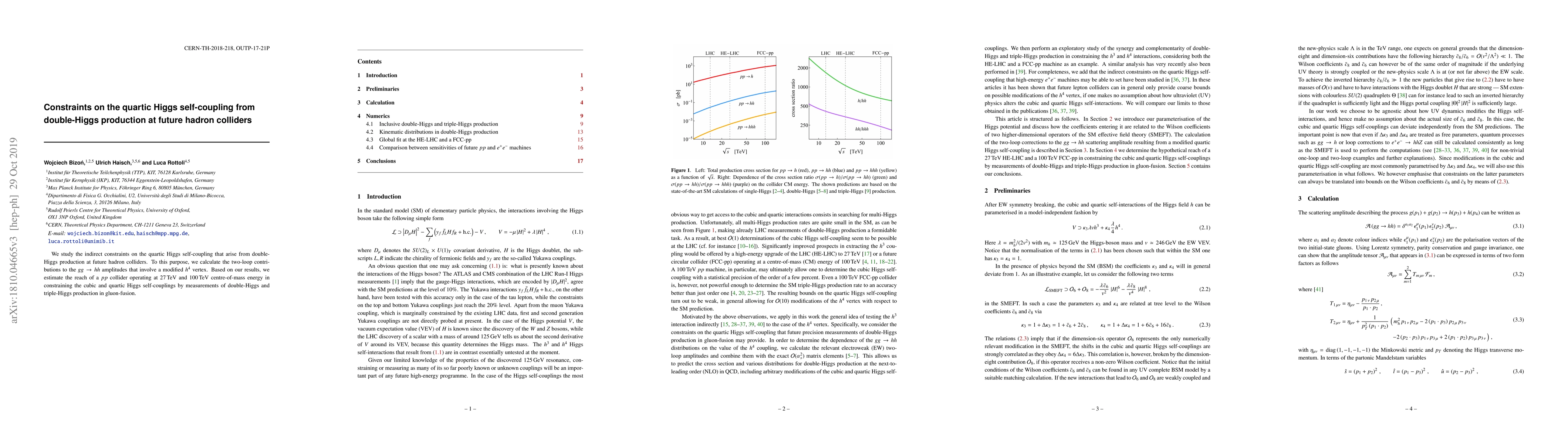 This paper investigates the indirect constraints on the quartic Higgs self-coupling from double-Higgs production at future hadron colliders, calculating two-loop contributions to the $gg \to hh$ process. It estimates the potential of a $pp$ collider at 27 TeV and 100 TeV to constrain these couplings via measurements of double- and triple-Higgs production in gluon-fusion.