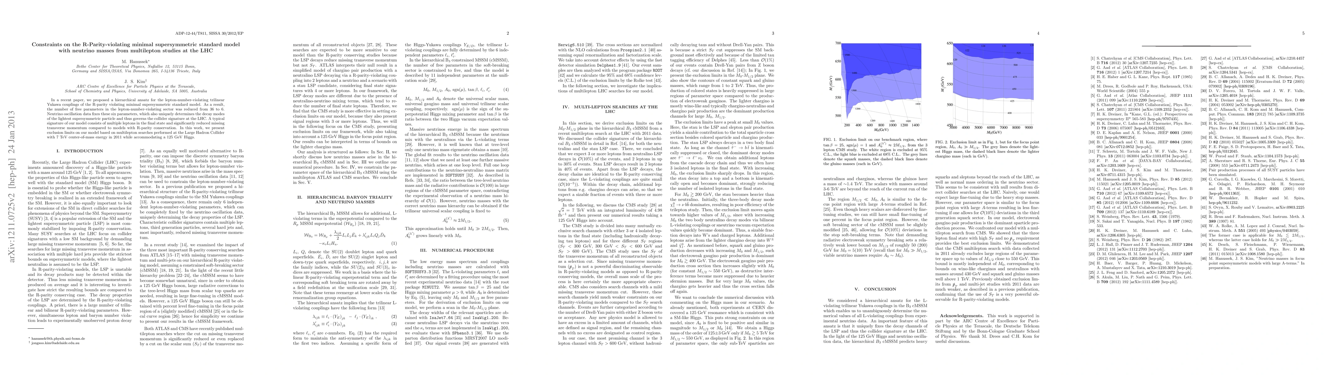 In a recent paper, we proposed a hierarchical ansatz for the lepton-number-violating trilinear Yukawa couplings of the R-parity-violating minimal supersymmetric standard model. As a result, the number of free parameters in the lepton-number-violating sector was reduced from 36 to 6. Neutrino oscillation data fixes these six parameters, which also uniquely determines the decay modes of the lightest supersymmetric particle and thus governs the collider signature at the LHC. A typical signature of our model consists of multiple leptons in the final state and significantly reduced missing transverse momentum compared to models with R-parity conservation. In this work, we present exclusion limits on our model based on multilepton searches performed at the Large Hadron Collider with 7 TeV center-of-mass energy in 2011 while accommodating a 125 GeV Higgs.