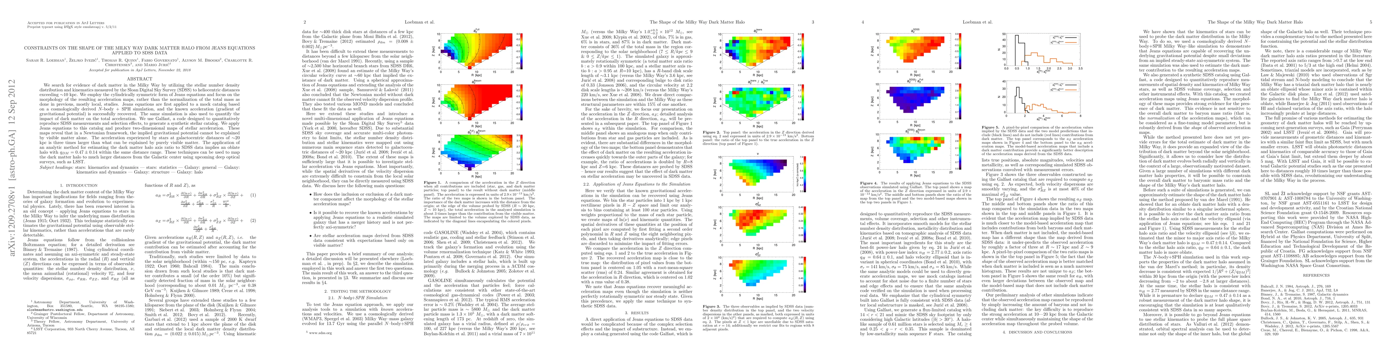 A study using Jeans equations and SDSS data found that dark matter makes up a significant portion of the Milky Way's mass, with an oblate halo shape, at distances exceeding 10 kpc from the center.