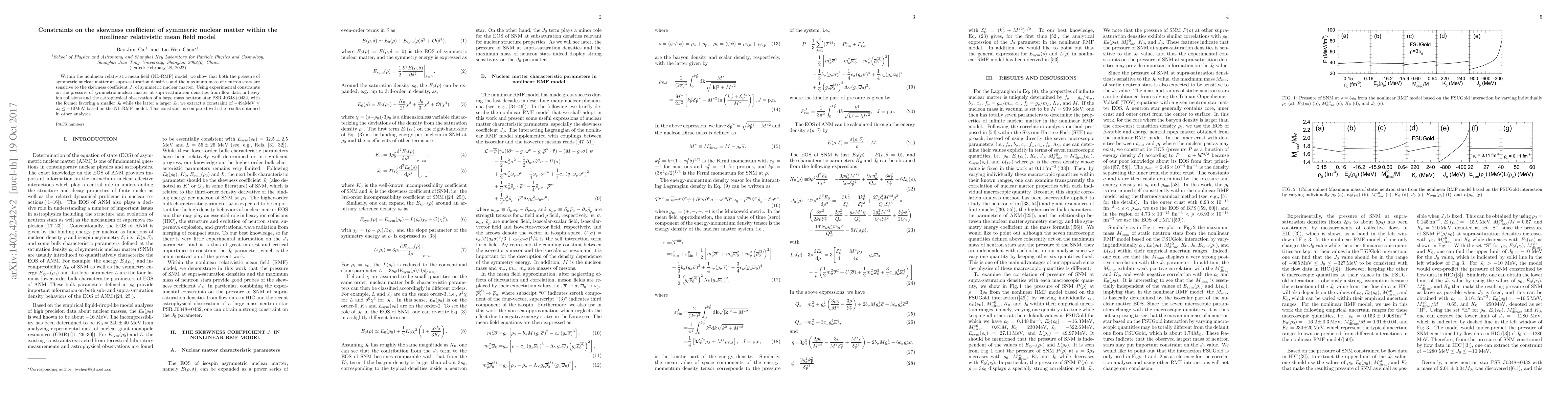 This paper constrains the skewness coefficient $J_0$ in the nonlinear relativistic mean field model using experimental data from heavy ion collisions and neutron star observations, resulting in a range of $-494 \mathrm{MeV}\leq J_0\leq -10 \mathrm{MeV}$. The study highlights the model's sensitivity to $J_0$ in describing both supra-saturation densities and neutron star masses.