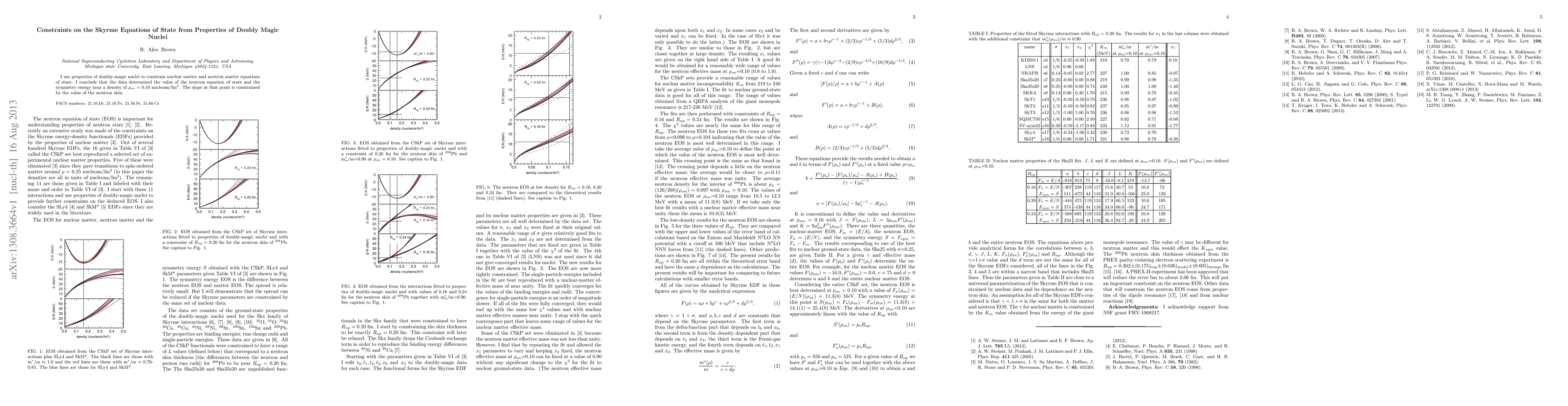 I use properties of doubly-magic nuclei to constrain nuclear matter and neutron matter equations of state. I conclude that the data determined the value of the neutron equation of state and the symmetry energy near a density of $\rho_{on}$ = 0.10 nucleons/fm$^{3}$. The slope at that point is constrained by the value of the neutron skin.