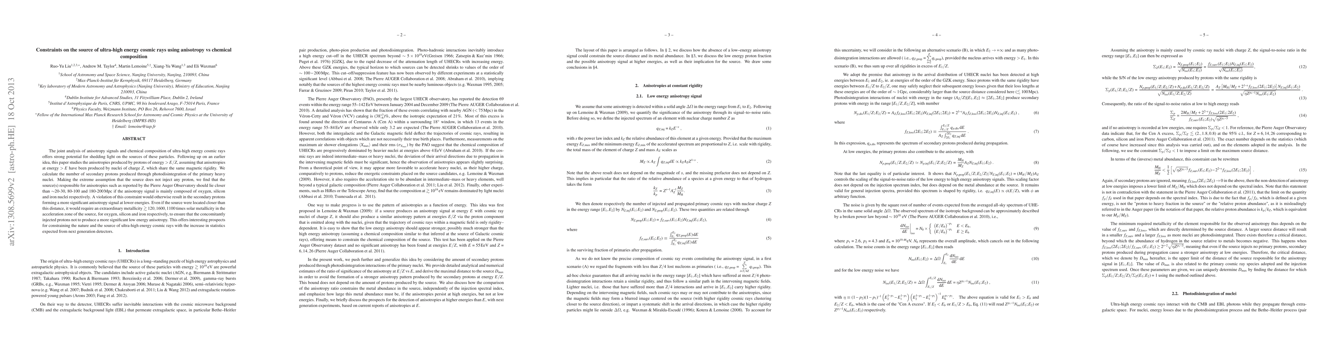 This paper investigates the sources of ultra-high energy cosmic rays by analyzing anisotropy and chemical composition, finding that sources must be within specific distances (20-30, 80-100, 180-200 Mpc) for oxygen, silicon, and iron nuclei respectively to avoid contradicting observed anisotropy signals. It also highlights the need for extraordinary metallicity in the source's acceleration zone to prevent protons from producing significant low-energy anisotropy.