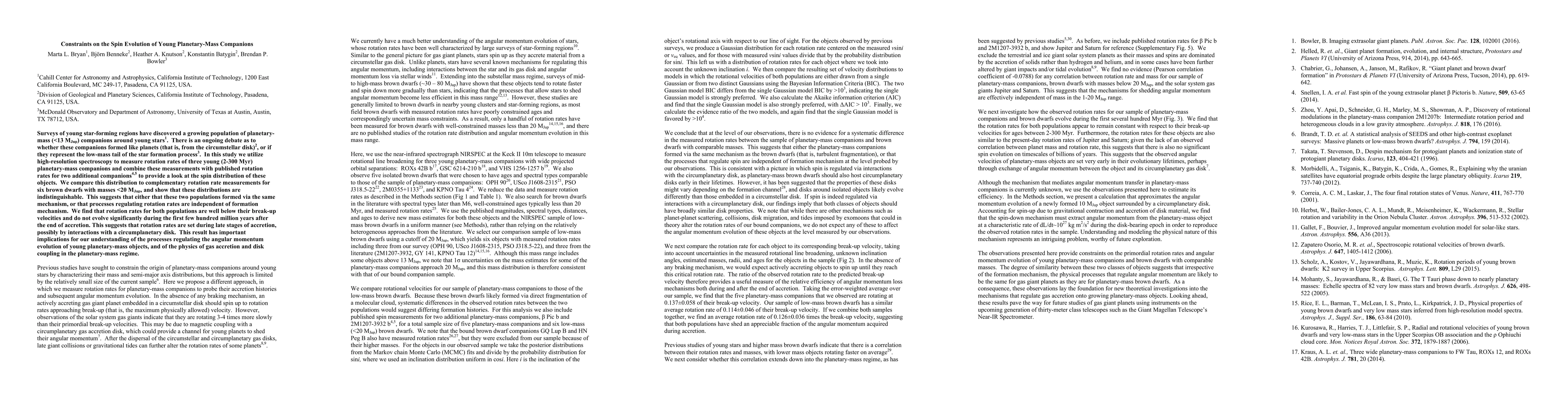 This paper measures the rotation rates of young planetary-mass companions and finds that their spin evolution is similar to that of brown dwarfs, suggesting a common formation mechanism or similar rotational regulation processes. Both populations exhibit low rotation rates that do not evolve significantly in the first few hundred million years, indicating that rotation rates are likely set during late accretion stages.