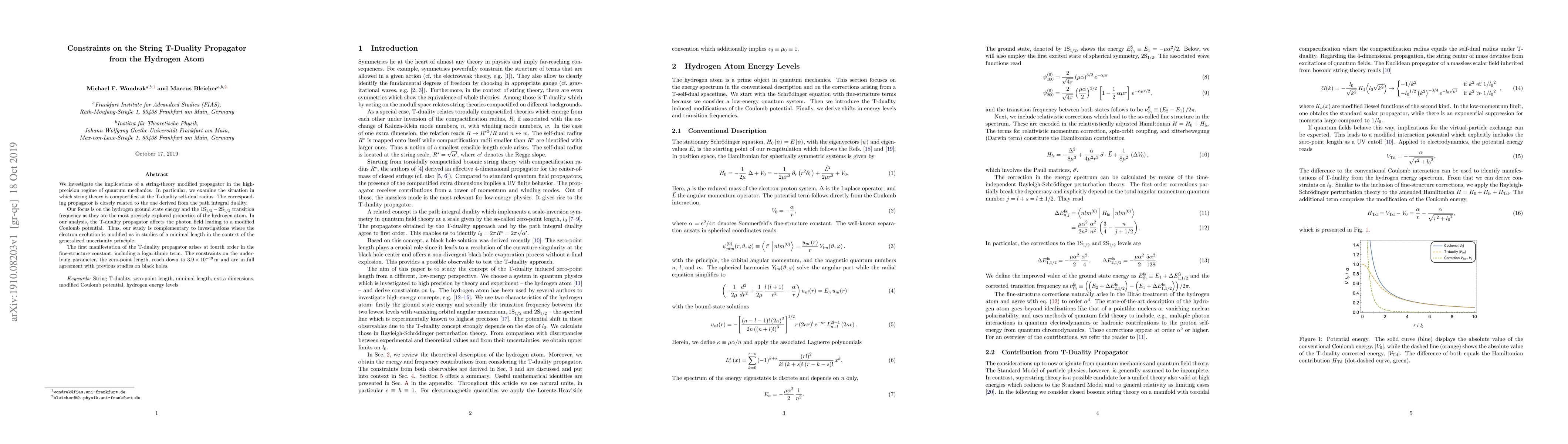 This study examines how a string theory-based modification to the photon’s behavior affects the hydrogen atom's energy levels, leading to precise constraints on fundamental length scales. The findings suggest that such string-inspired effects are consistent with current atomic measurements and black hole physics.