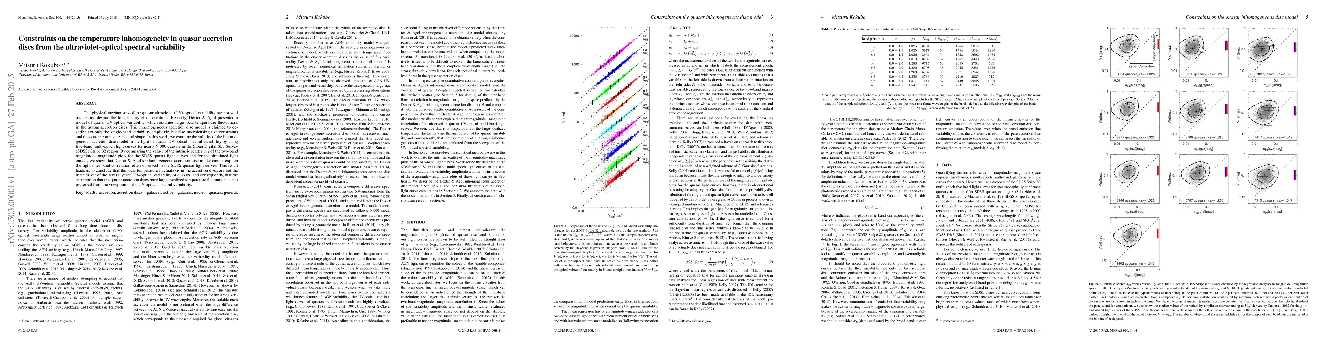 This study investigates the validity of Dexter & Agol's inhomogeneous accretion disc model for quasar UV-optical variability using SDSS quasar light curves. It concludes that the model cannot explain the observed inter-band correlation, suggesting that local temperature fluctuations are not the primary driver of quasar UV-optical variability.
