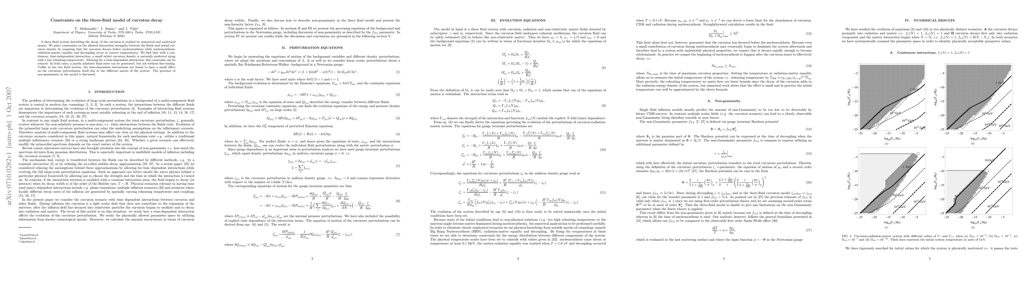 This paper constrains the interaction strengths in a three-fluid model for curvaton decay, finding that a small initial curvaton density and low reheating temperature are preferred. Time-dependent interactions can relax these constraints but require fine-tuning, and non-gaussianity is also considered.