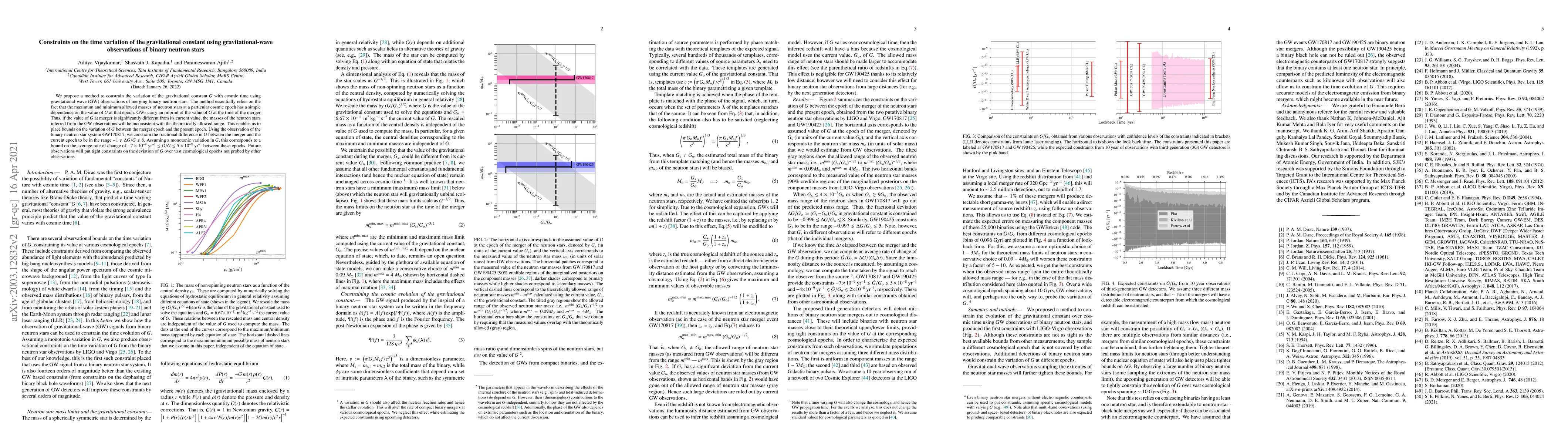 This paper proposes a method to constrain the time variation of the gravitational constant $G$ using gravitational-wave observations of merging binary neutron stars, finding a range for $\Delta G/G$ and an average rate of change $\dot{G}/G$ based on the GW170817 observation. Future observations promise tighter constraints on $G$'s deviation over cosmological timescales.