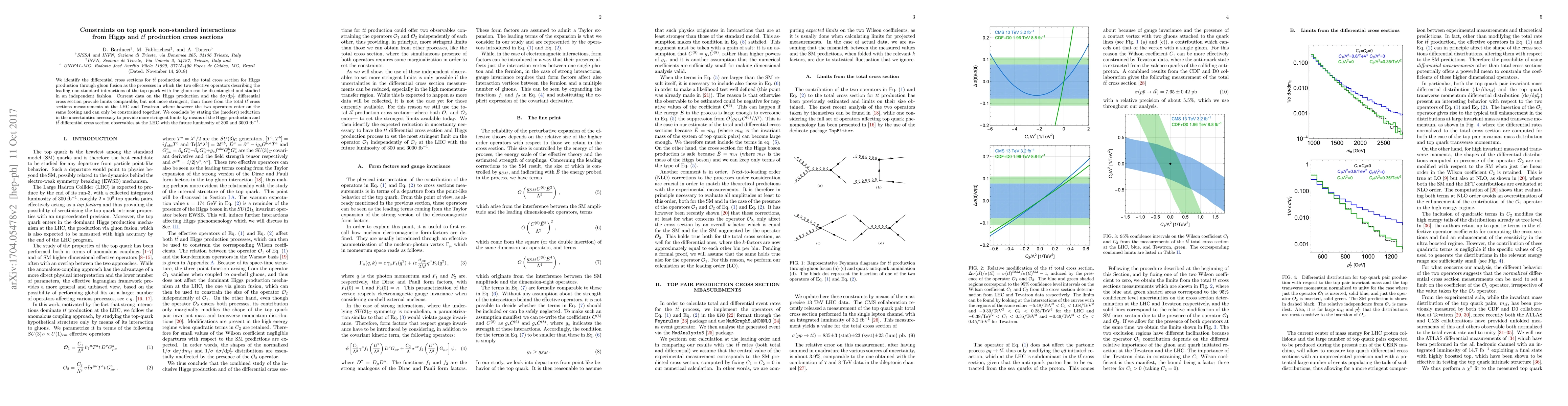 This paper investigates the constraints on top quark non-standard interactions using differential and total cross sections for $t\bar t$ production and Higgs production via gluon fusion. Current data provide comparable but not more stringent limits than previous LHC and Tevatron measurements, suggesting future higher luminosity data could improve these constraints.