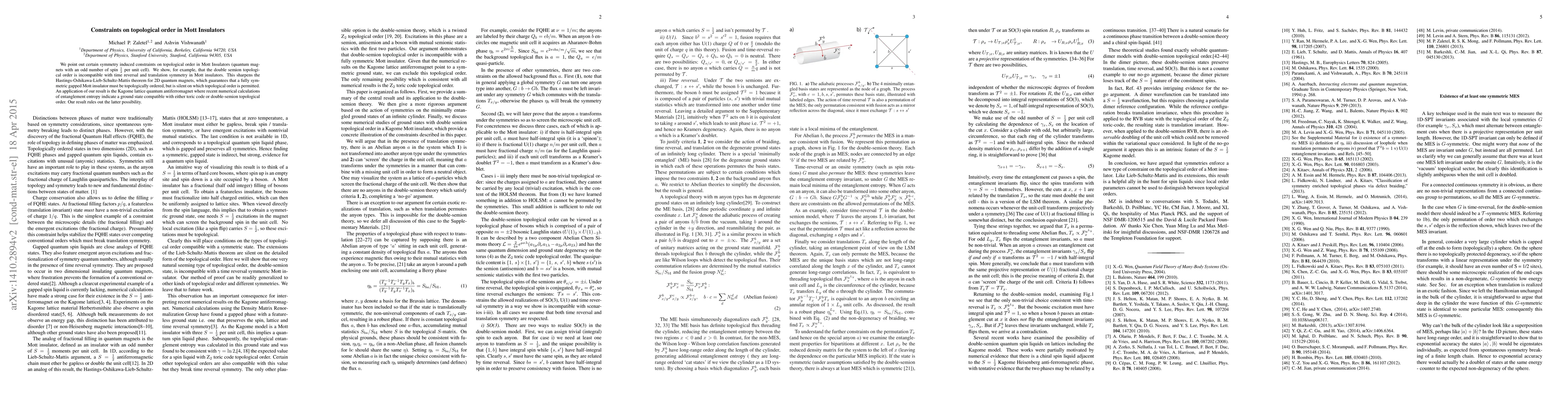 This paper identifies symmetry-induced constraints on topological order in Mott Insulators, specifically ruling out double semion order in systems with time reversal and translation symmetry. This refines the Hastings-Oshikawa-Lieb-Schultz-Mattis theorem for 2D quantum magnets, and applies to the Kagome lattice quantum antiferromagnet, eliminating double semion order as a possibility.