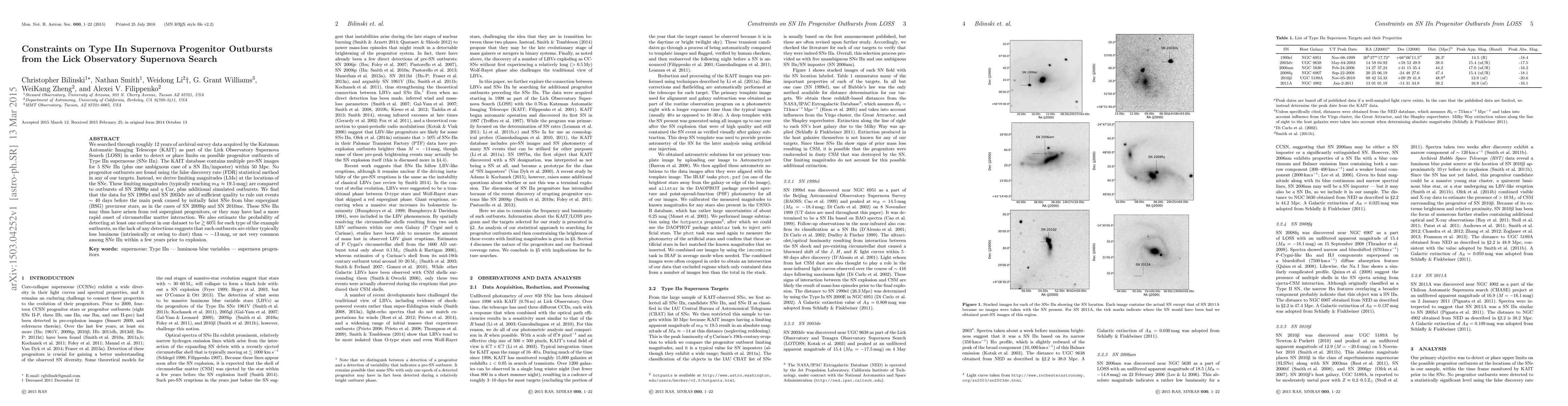 This study analyzed 12 years of data from the Lick Observatory Supernova Search to detect progenitor outbursts of Type IIn supernovae, finding no evidence of such events. The data suggest these supernovae likely arise from red supergiant progenitors or involve rapid circumstellar matter interaction.