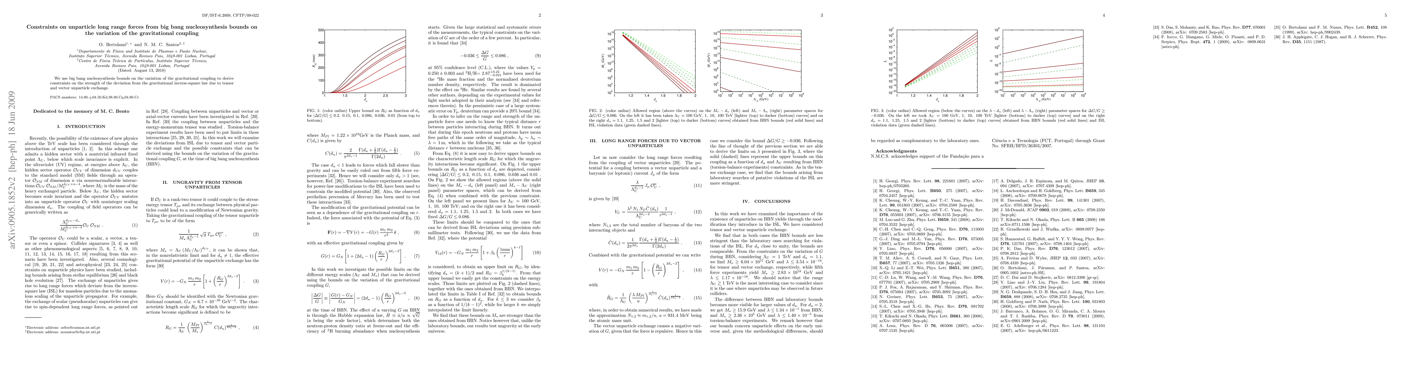 We use big bang nucleosynthesis bounds on the variation of the gravitational coupling to derive constraints on the strength of the deviation from the gravitational inverse-square law due to tensor and vector unparticle exchange.