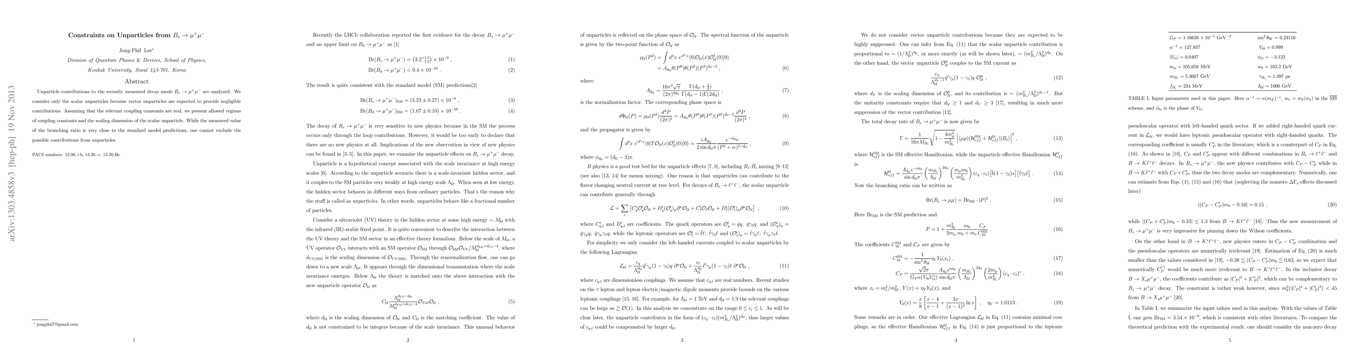This work presents a novel approach to constrain unparticle interactions using Bs\to\mu\mu decay, which is distinct from existing research on ordinary particles