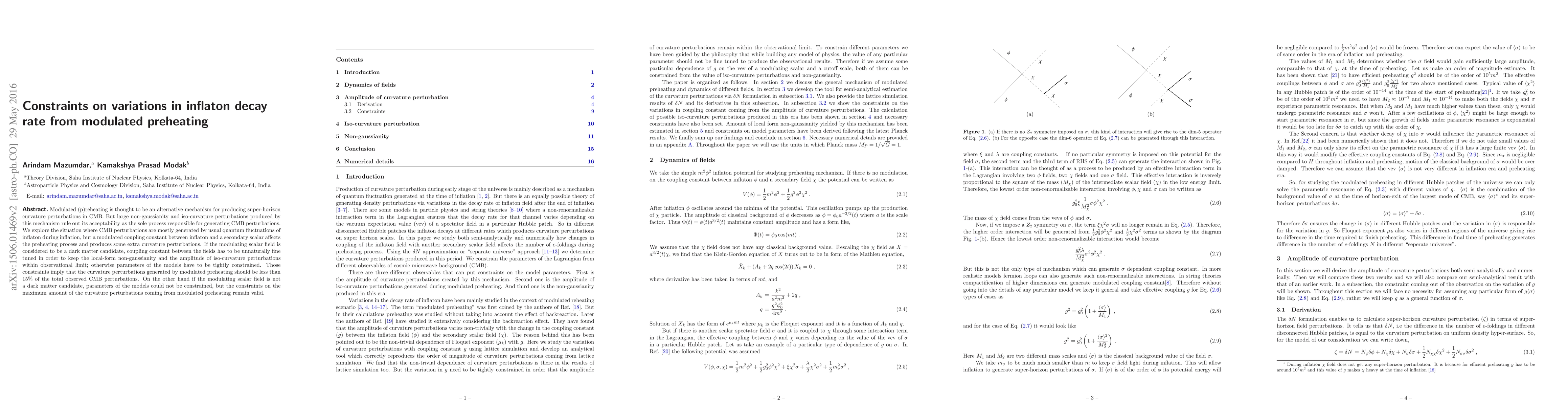 Modulated (p)reheating is thought to be an alternative mechanism for producing super-horizon curvature perturbations in CMB. But large non-gaussianity and iso-curvature perturbations produced by this mechanism rule out its acceptability as the sole process responsible for generating CMB perturbations. We explore the situation where CMB perturbations are mostly generated by usual quantum fluctuations of inflaton during inflation, but a modulated coupling constant between inflaton and a secondary scalar affects the preheating process and produces some extra curvature perturbations. If the modulating scalar field is considered to be a dark matter candidate, coupling constant between the fields has to be unnaturally fine tuned in order to keep the local-form non-gaussianity and the amplitude of iso-curvature perturbations within observational limit; otherwise parameters of the models have to be tightly constrained. Those constraints imply that the curvature perturbations generated by modulated preheating should be less than 15% of the total observed CMB perturbations. On the other hand if the modulating scalar field is not a dark matter candidate, parameters of the models could not be constrained, but the constraints on the maximum amount of the curvature perturbations coming from modulated preheating remain valid.