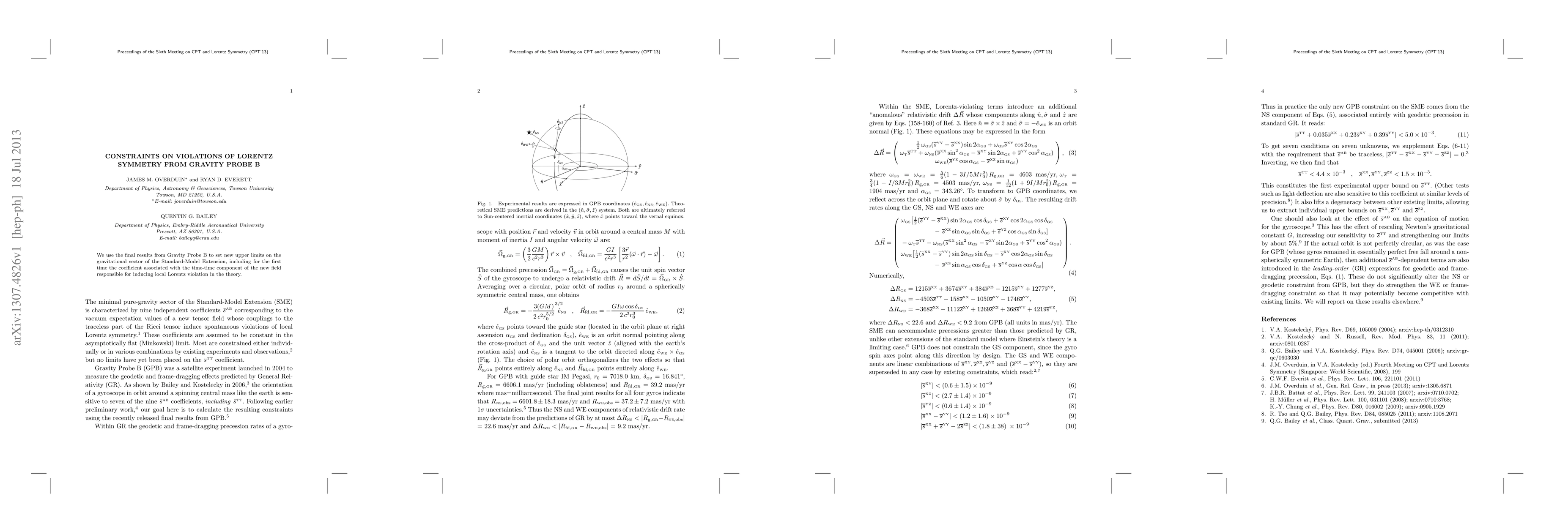 This paper utilizes Gravity Probe B data to establish stringent new upper limits on violations of Lorentz symmetry in the gravitational sector of the Standard-Model Extension, specifically focusing on the time-time component of the new field linked to local Lorentz violation.