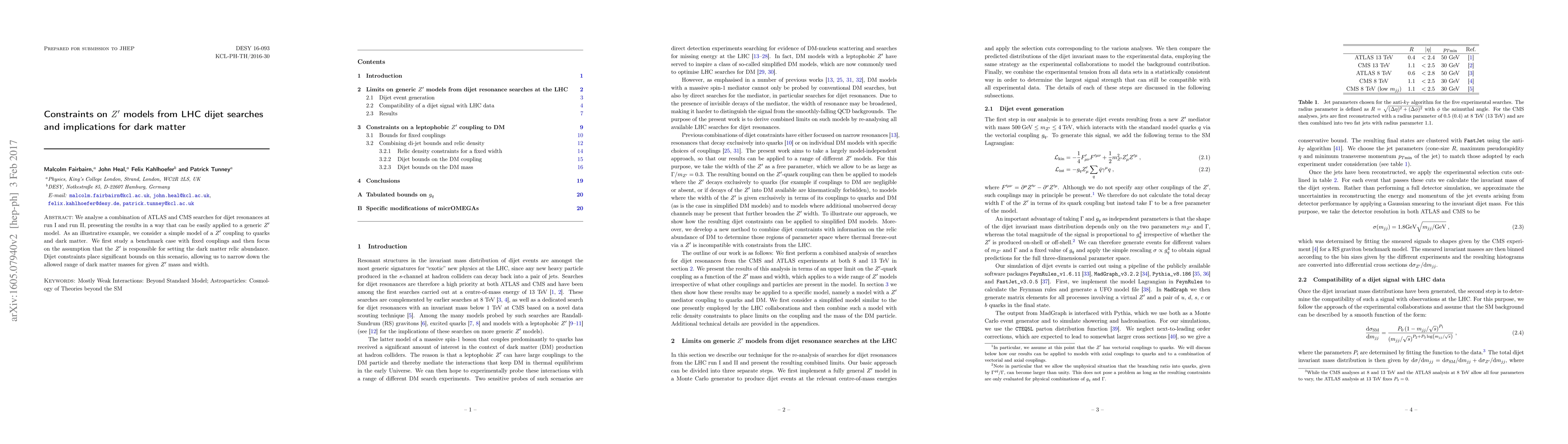 Research constraints on Z' models from LHC dijet searches provide new insights into dark matter, allowing for a narrowed down range of dark matter masses for given Z' mass and width.
