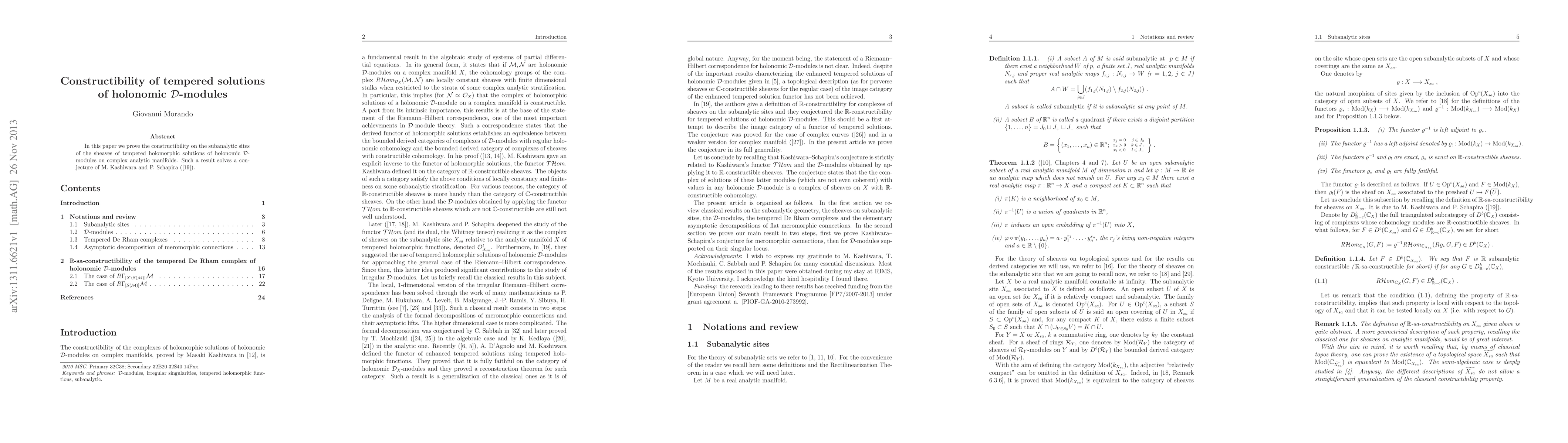 This paper proves the constructibility of tempered holomorphic solutions of holonomic D-modules on complex analytic manifolds, solving a conjecture by M. Kashiwara and P. Schapira from 2003. The result holds on subanalytic sites.
